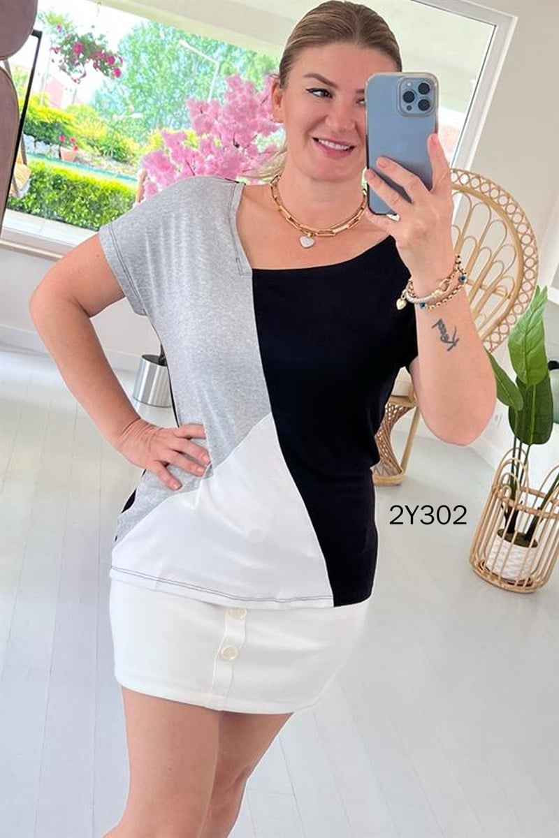 GEOMETRİK DESEN TSHİRT OMUZDAN AŞAĞI 66 CM
