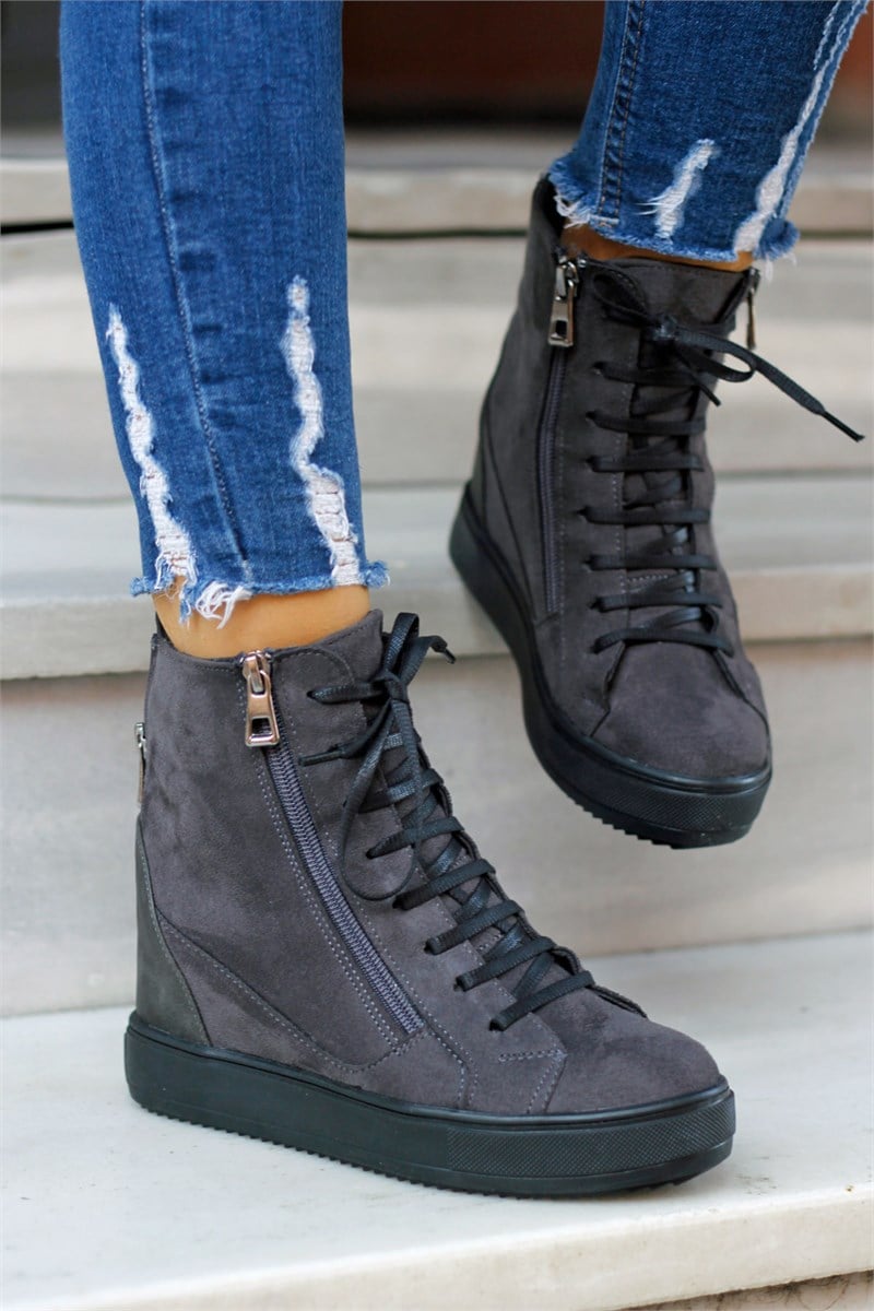 Suni Deri Süet Gizli Ökçe : 6 CM Platform : 3 CM İç Ve Dış Kısımlardan Fermuar Detaylı ve Bağcıklı olarak Üretilmiştir.