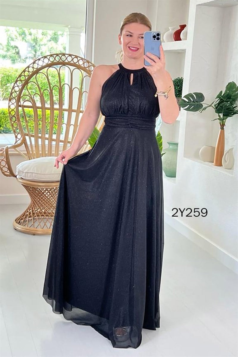 HALTER YAKA SİMLİ UZUN ELBİSE OMUZDAN AŞAĞI 160 CM