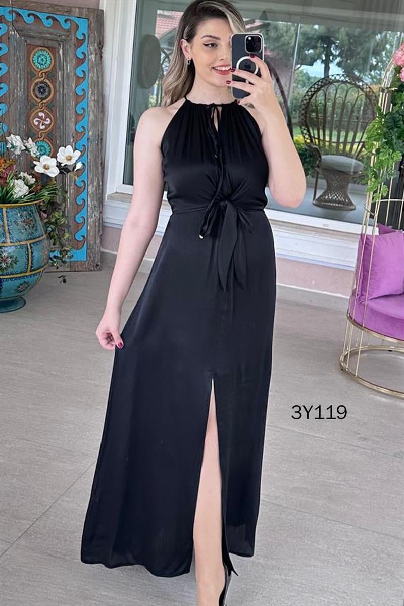 Halter Yaka Yoryo Saten Elbise