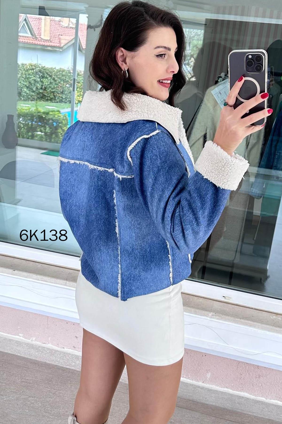 İÇİ PELUŞLU KOT CEKET OMUZDAN AŞAĞI 55 CM