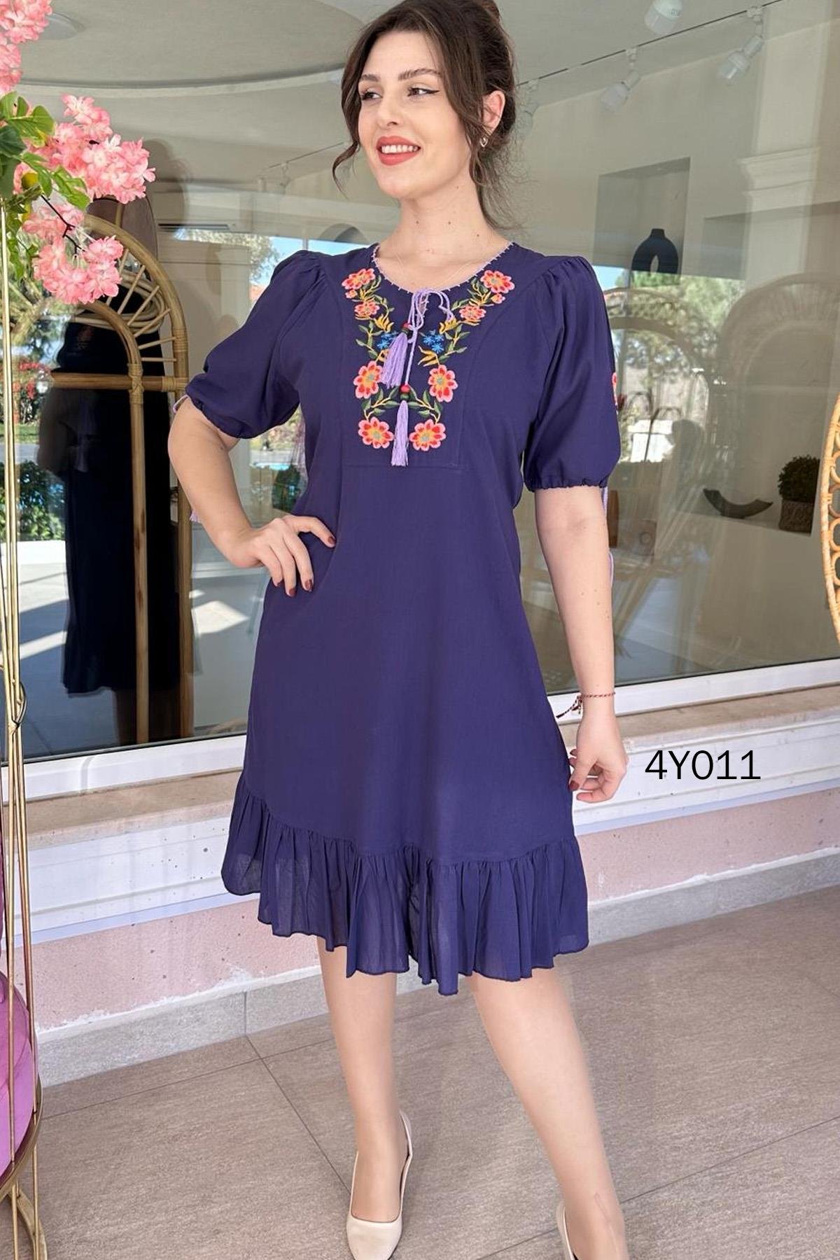 İki Katlı Çiçek Nakışlı Otantik Elbise