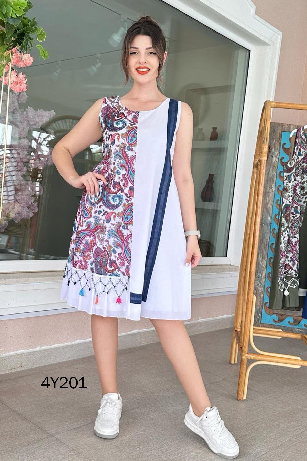 İki Katlı Desenli Oya İşli Otantik Elbise