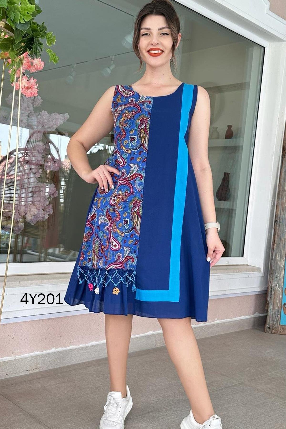 İki Katlı Desenli Oya İşli Otantik Elbise