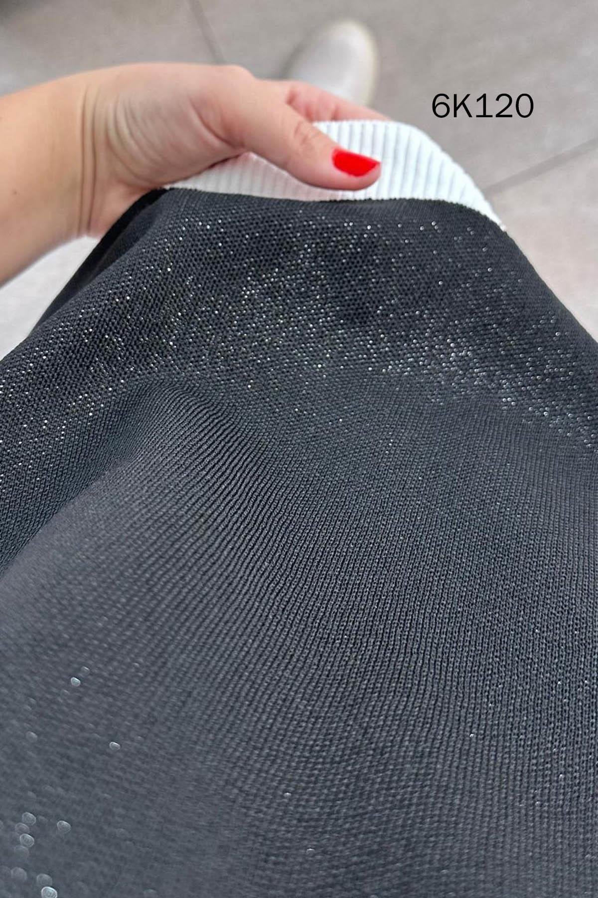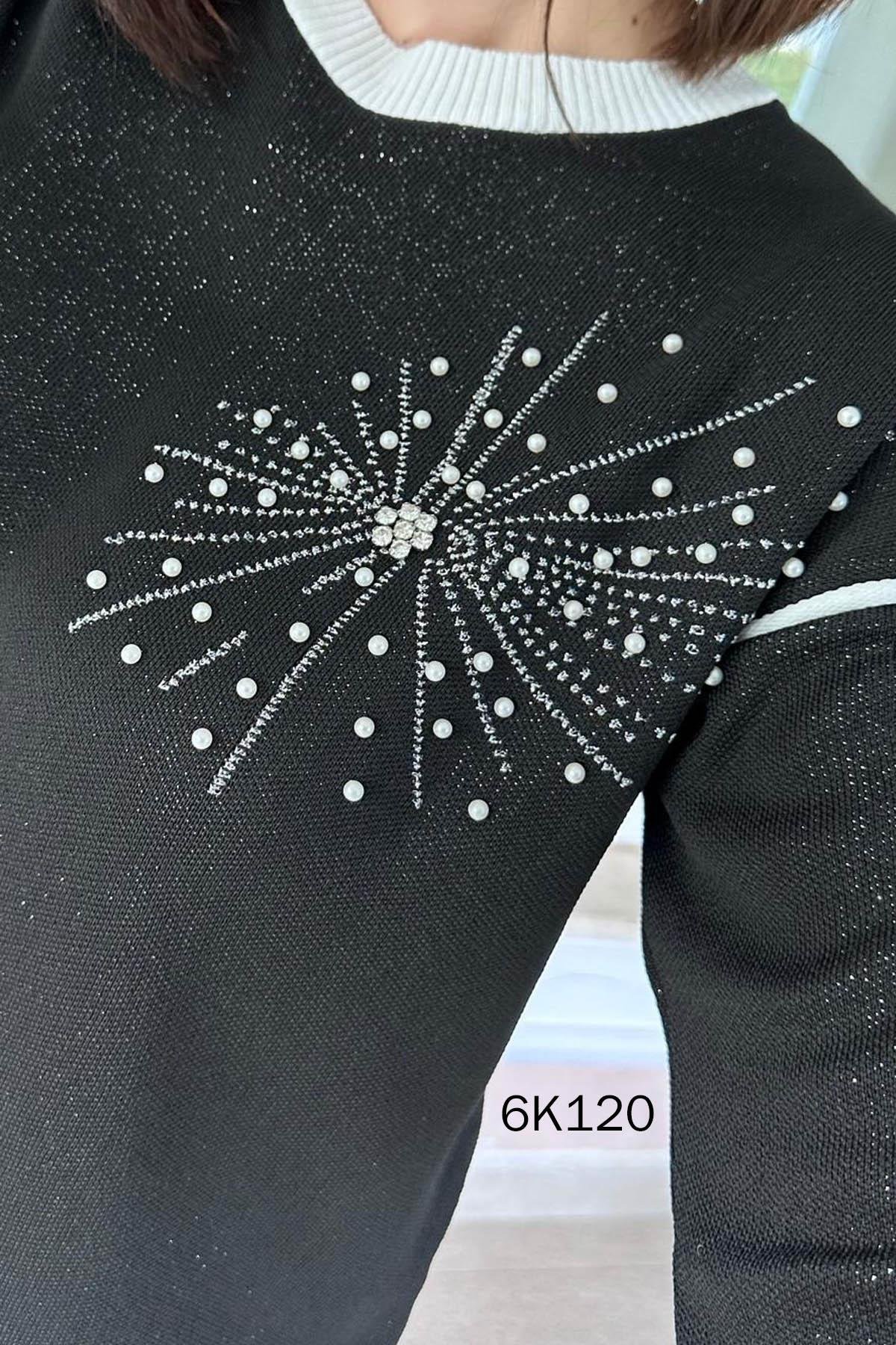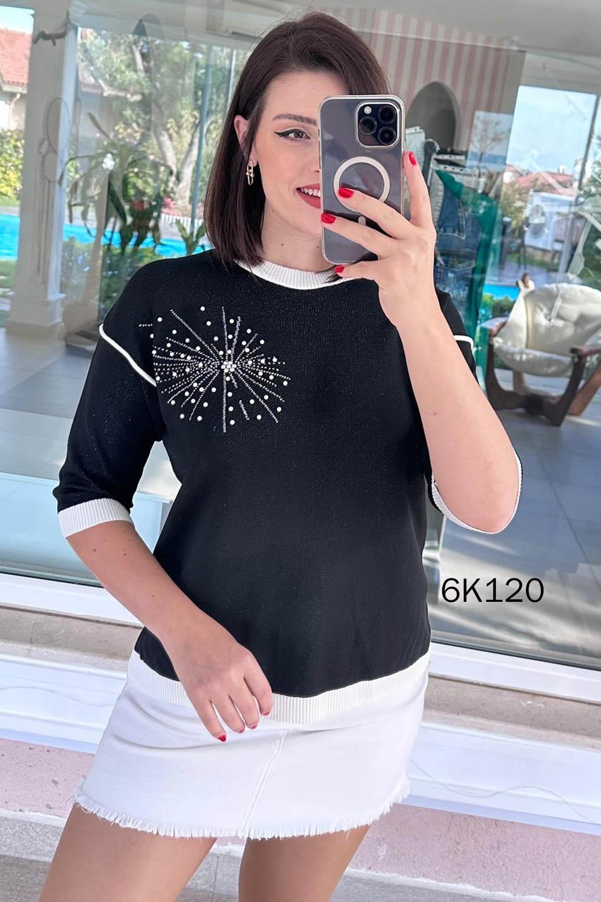 İNCİ DETAY SİMLİ TRİKO BLUZ OMUZDAN AŞAĞI 63 CM