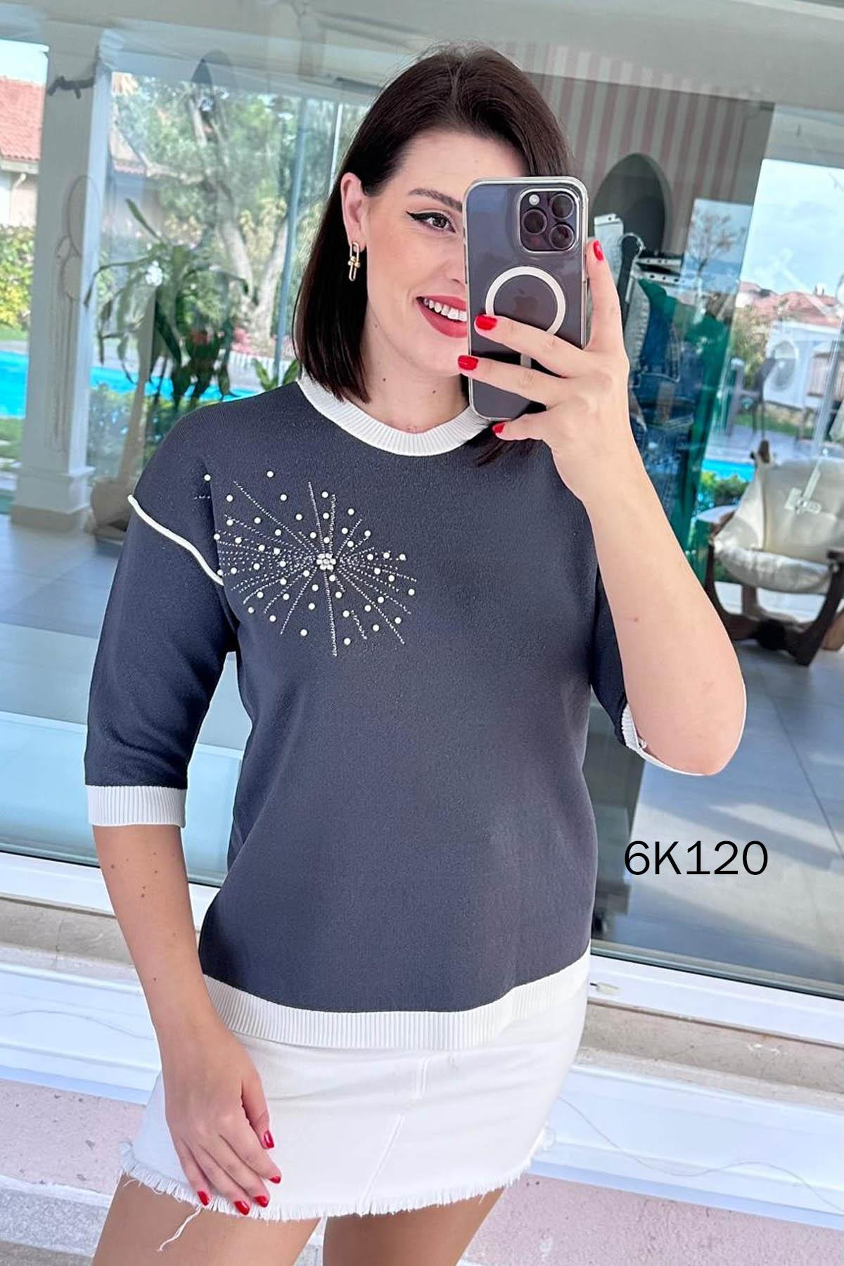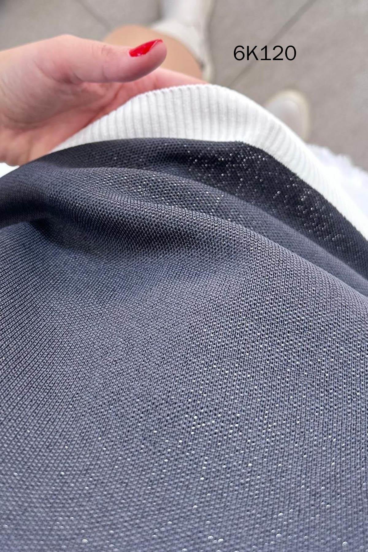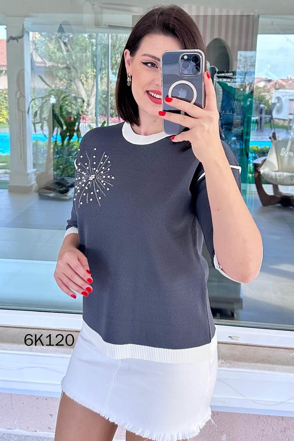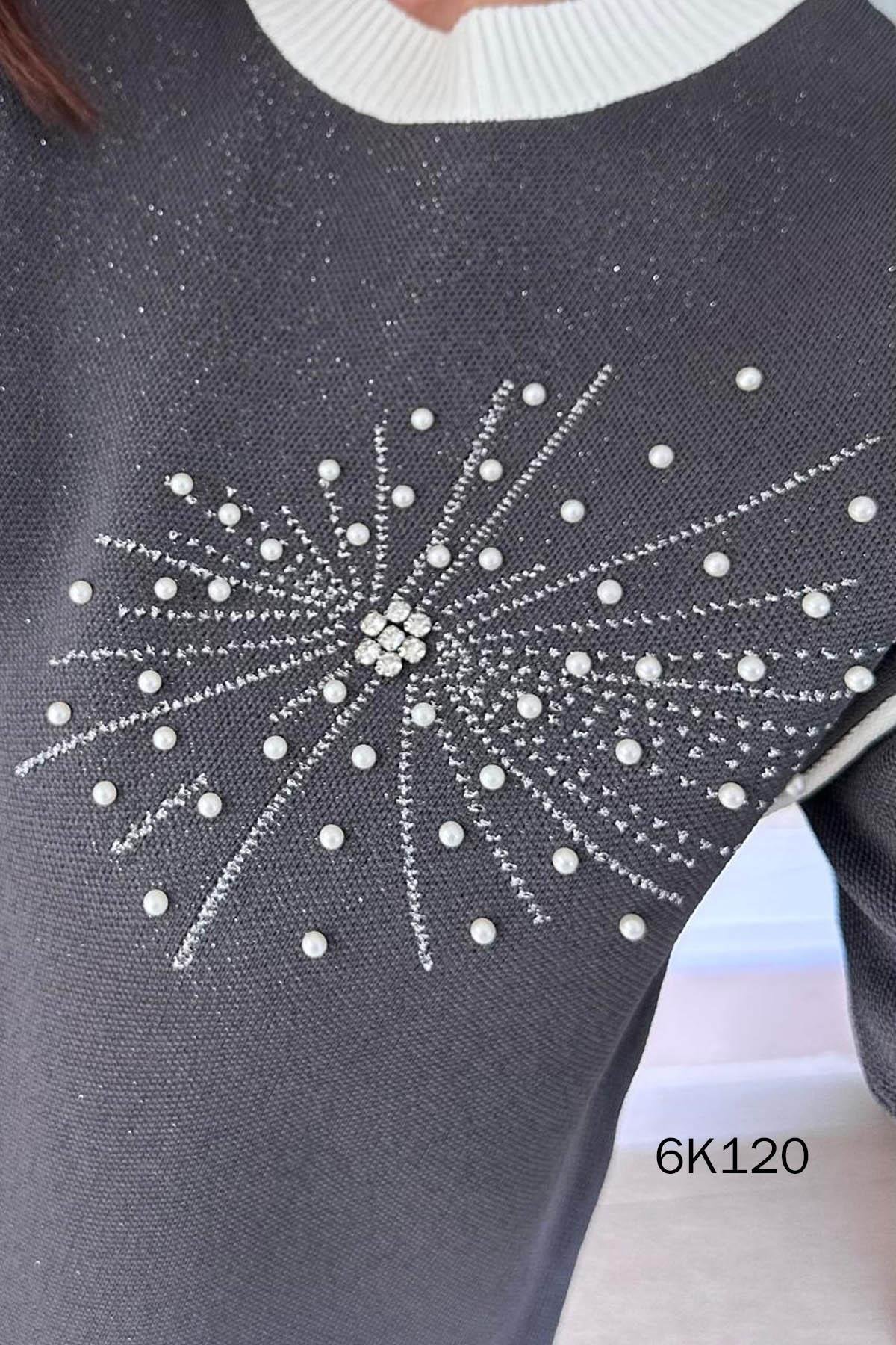 İnci Detay Simli Triko Bluz