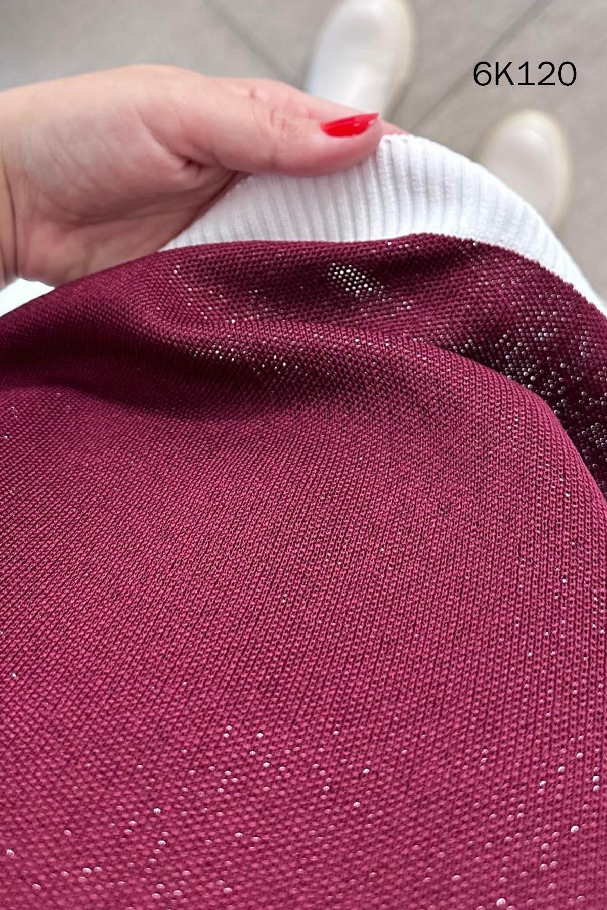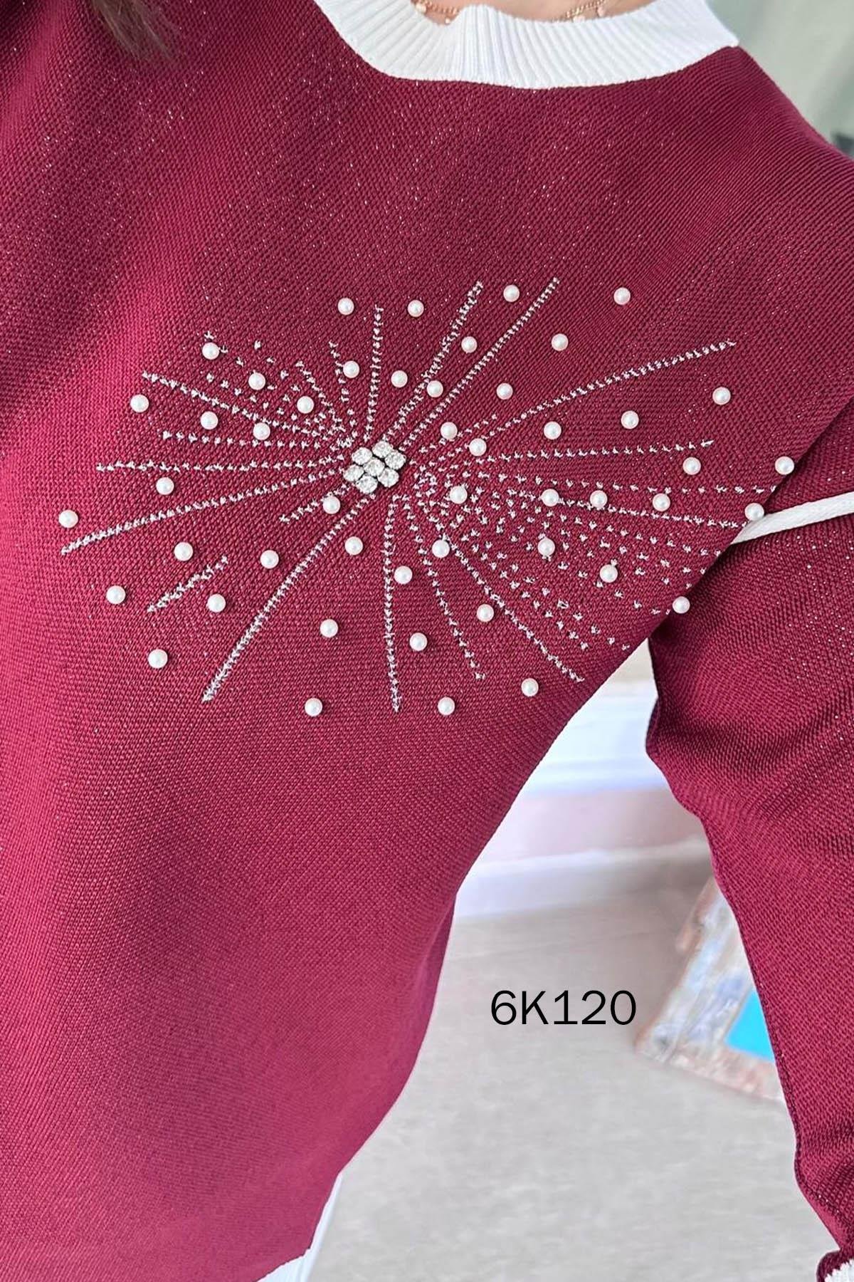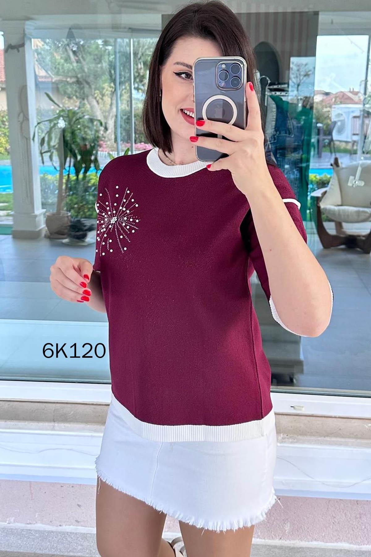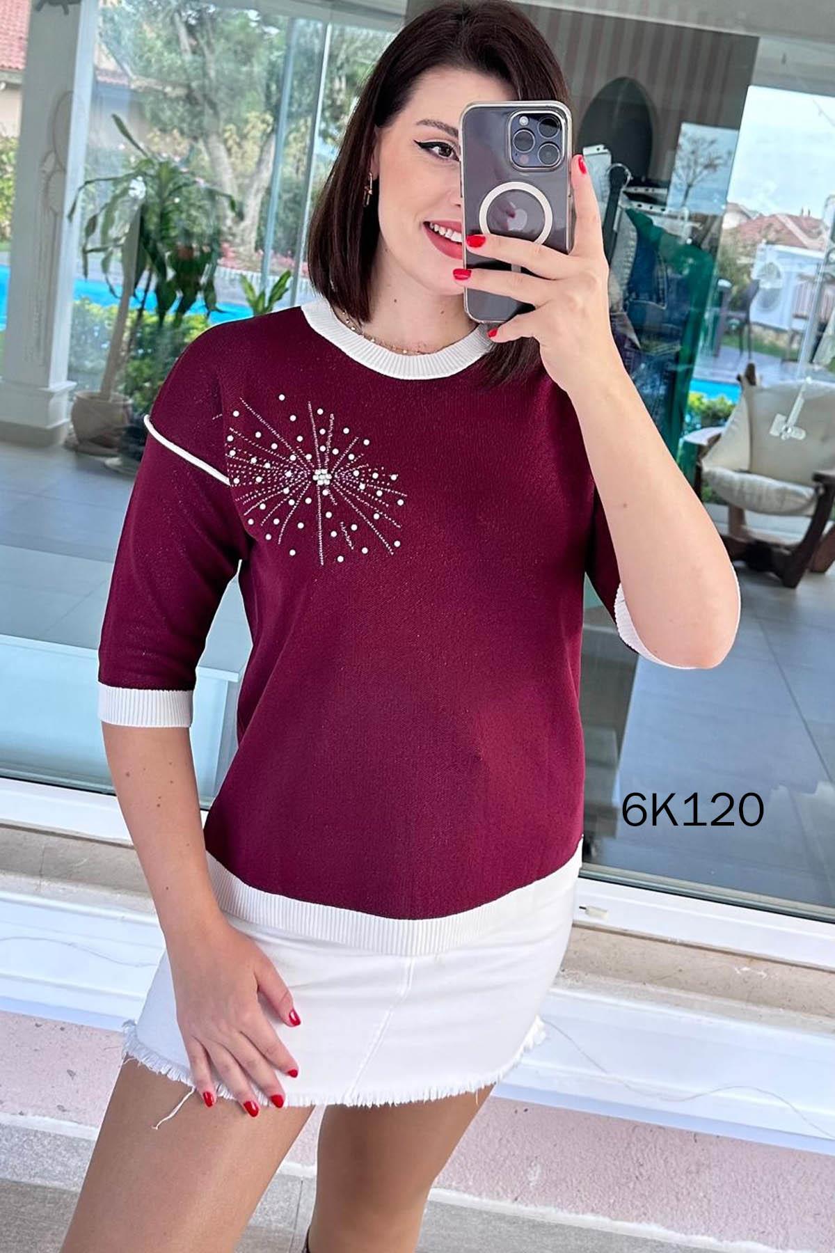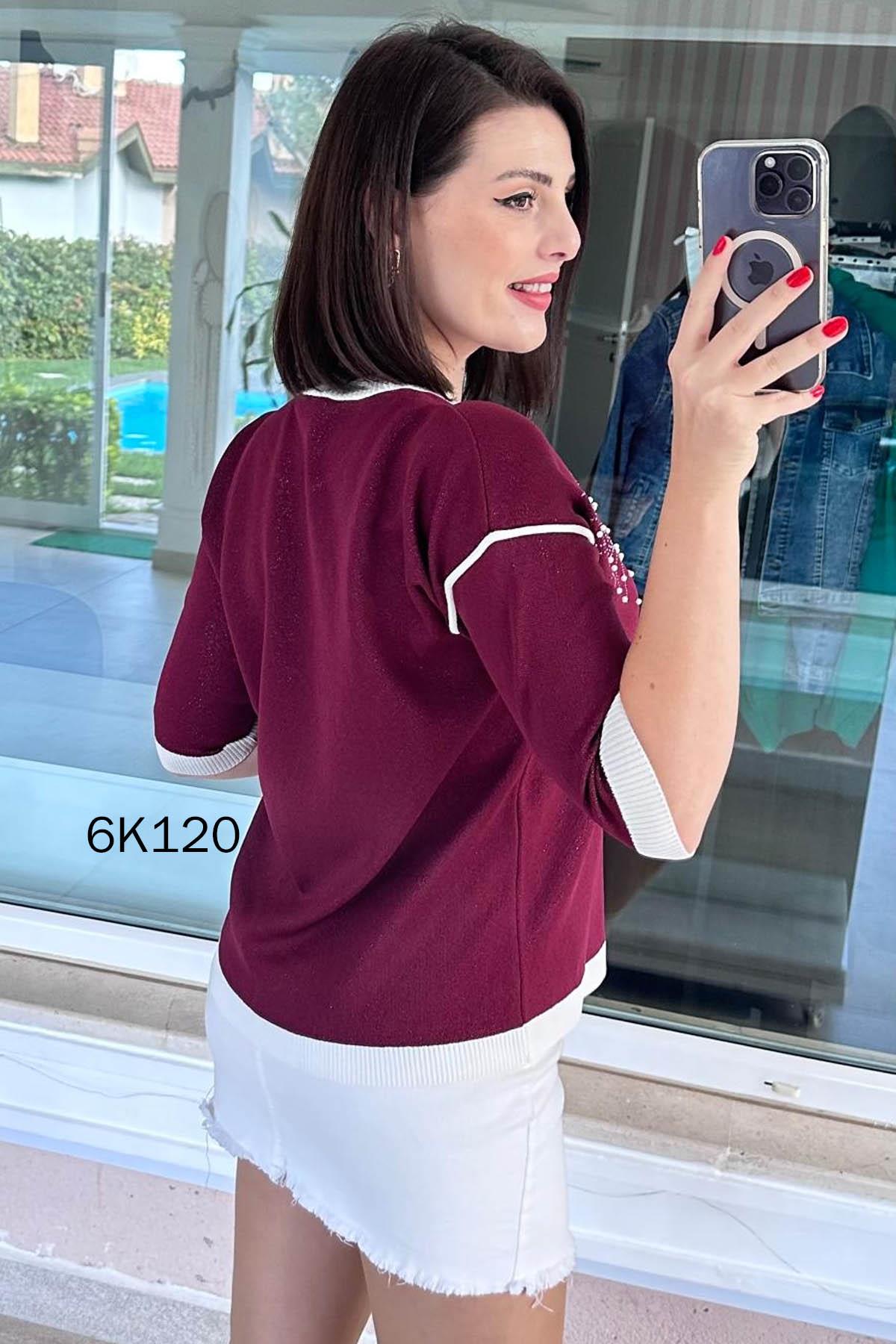 İNCİ DETAY SİMLİ TRİKO BLUZ OMUZDAN AŞAĞI 63 CM