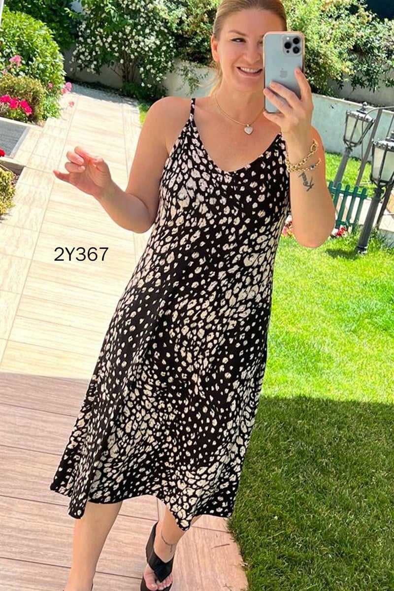 İP ASKILI MİDİ ELBİSE OMUZDAN AŞAĞI 107 CM