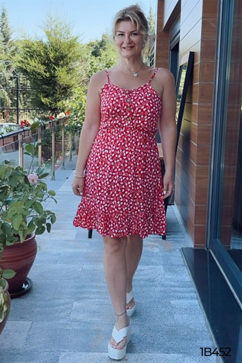 İP ASKILI ÖNDEN DÜĞMELİ ELBİSE OMUZDAN AŞAĞI 90 CM