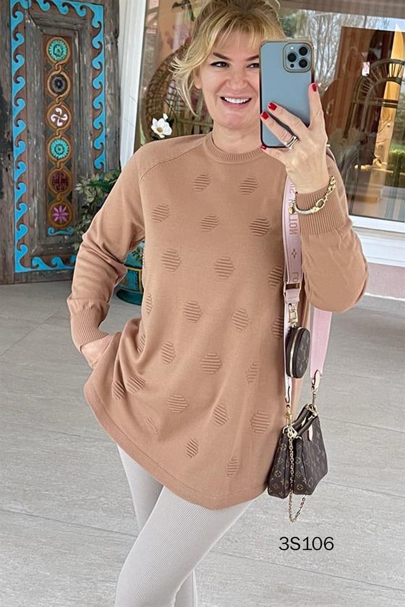 KABARTMALI TRİKO BLUZ OMUZDAN AŞAĞI 75 CM