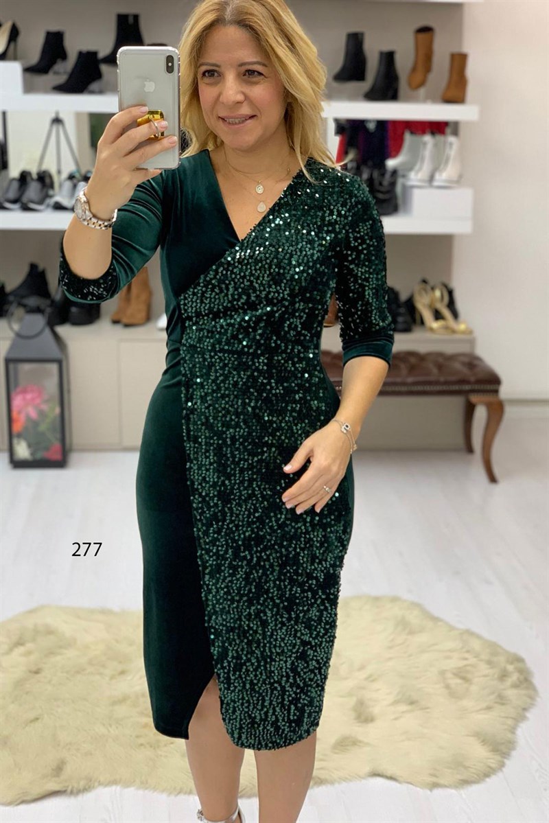 Kadife Pul Detay Elbise