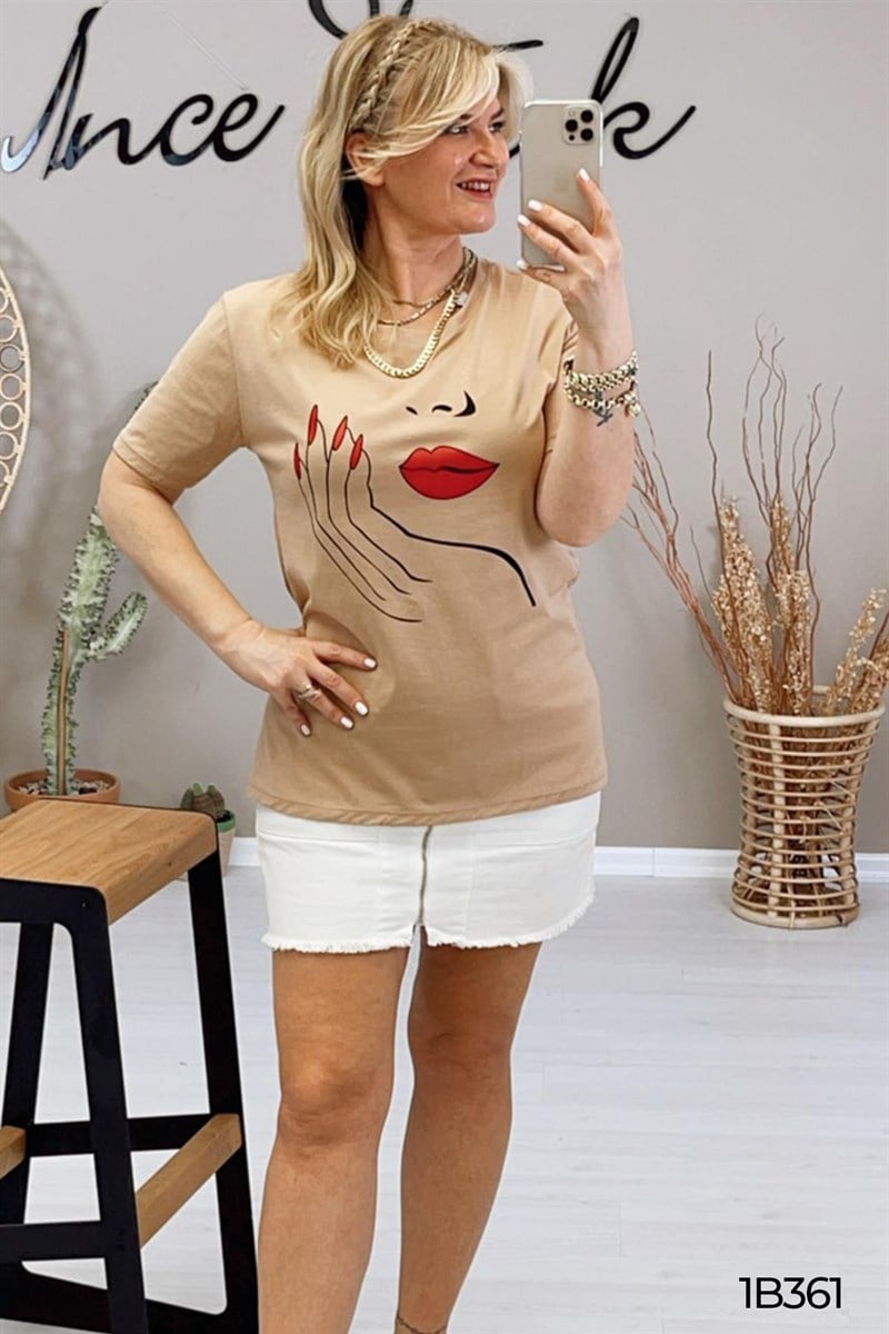 KADIN YÜZ BASKILI BAMBU TSHİRT OMUZDAN AŞAĞI 70 CM
