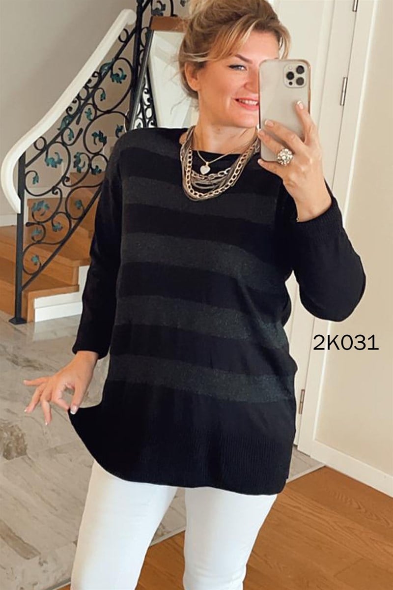 Kalın Çizgili Simli Triko Bluz