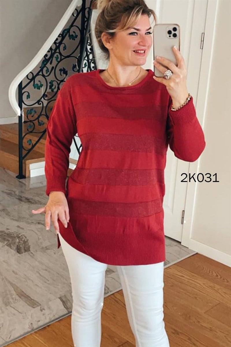 Kalın Çizgili Simli Triko Bluz