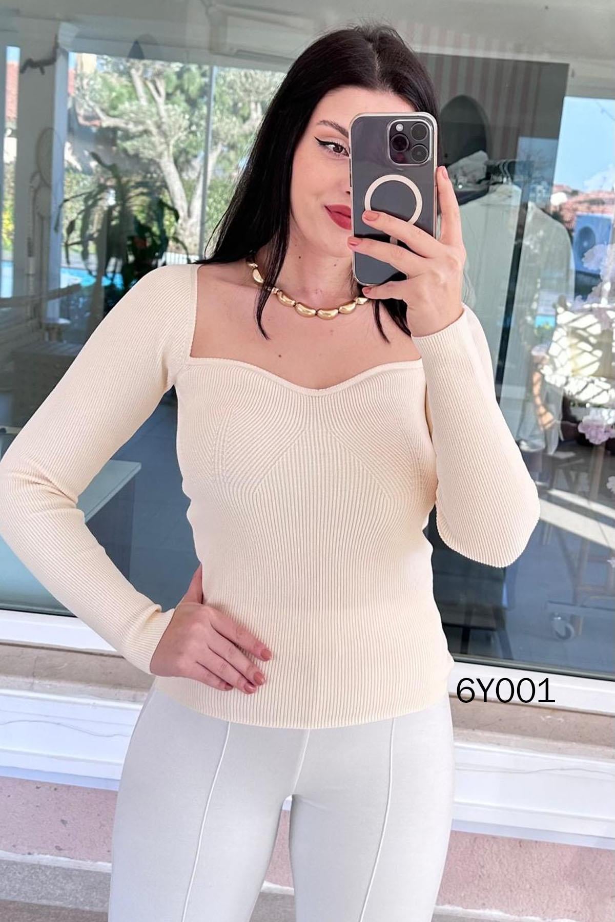 Kalp Yaka Çelik Triko Bluz (6Y0010701036)