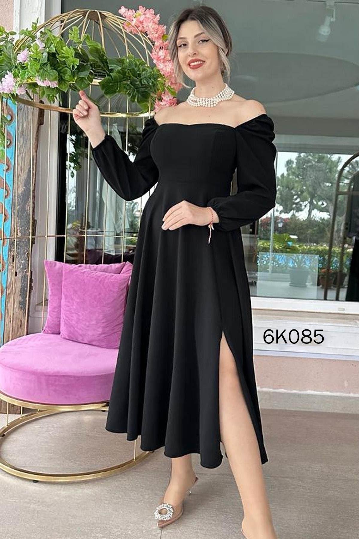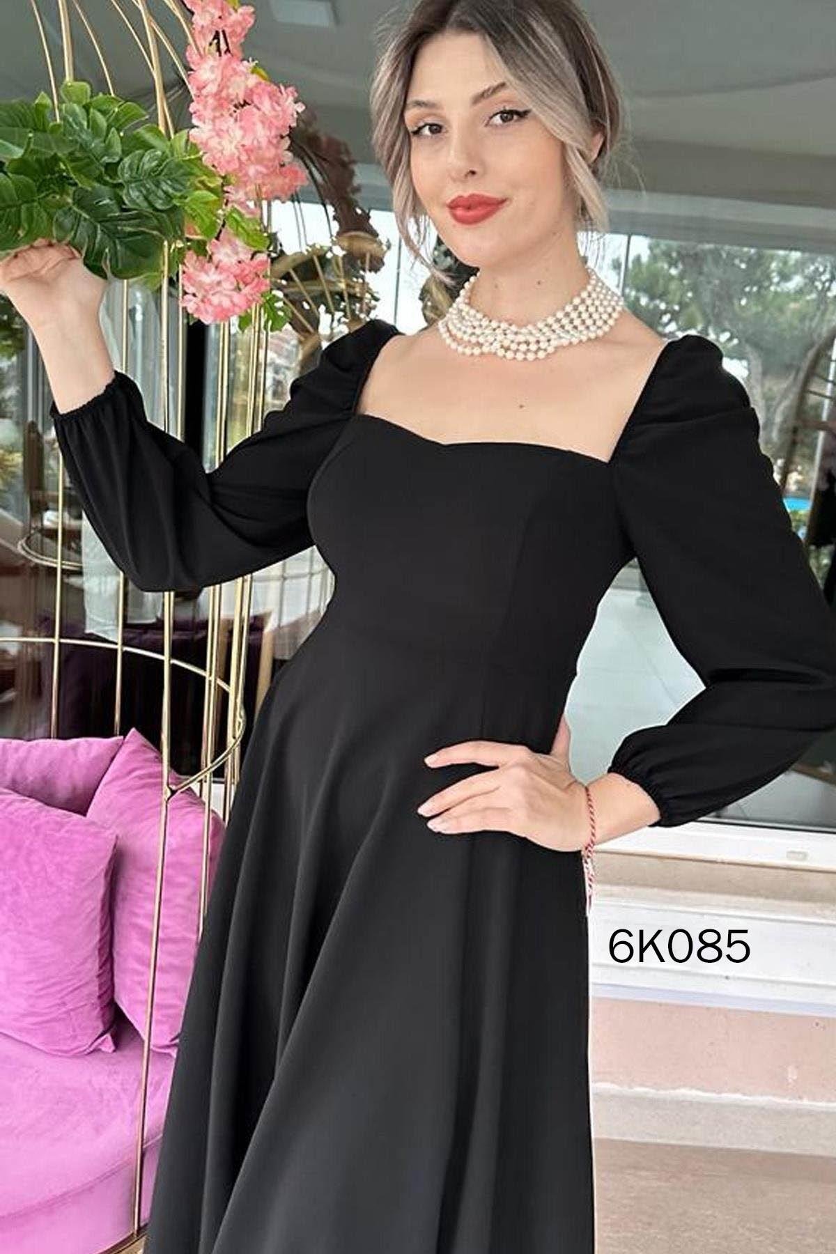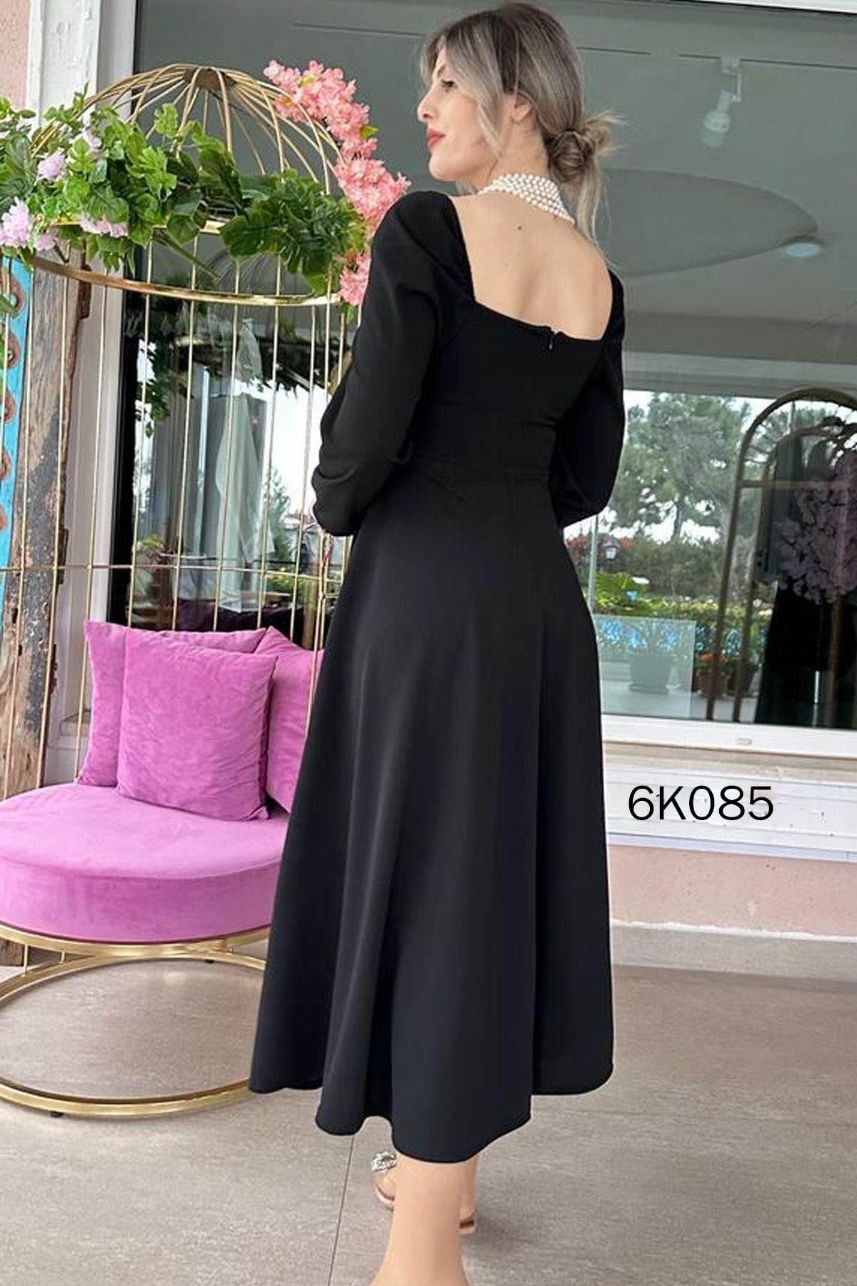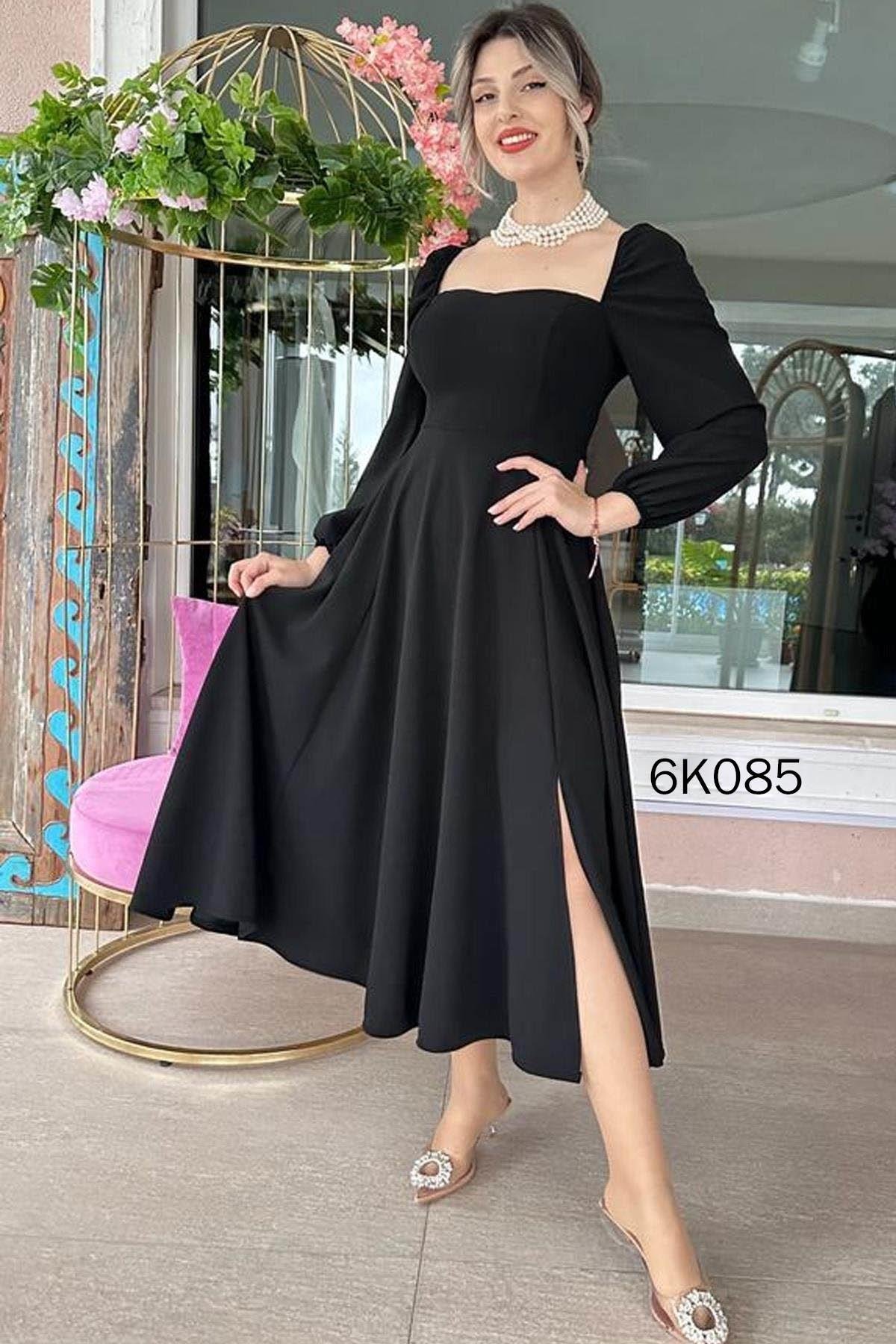 Kalp Yaka Yırtmaçlı Krep Elbise