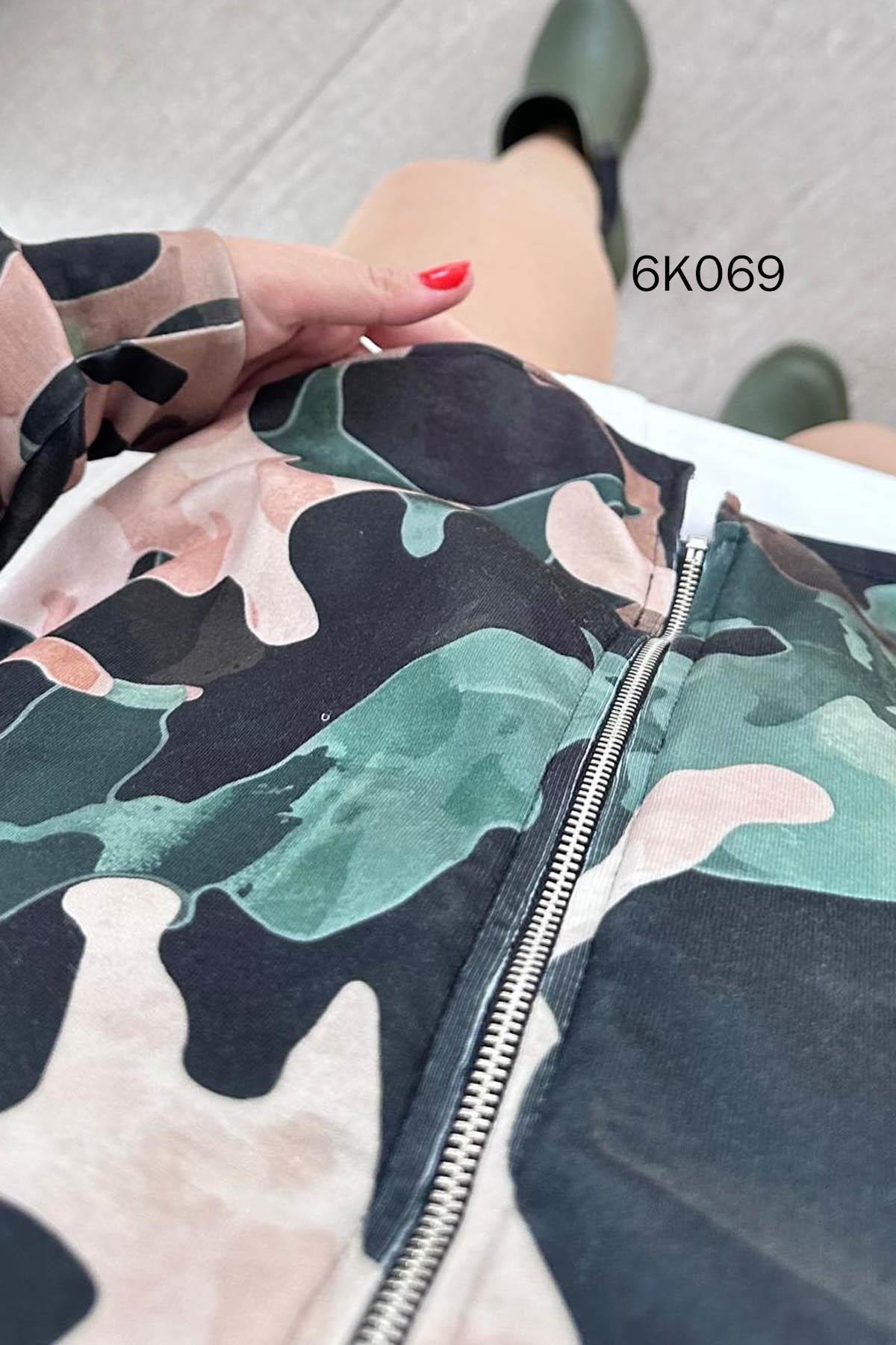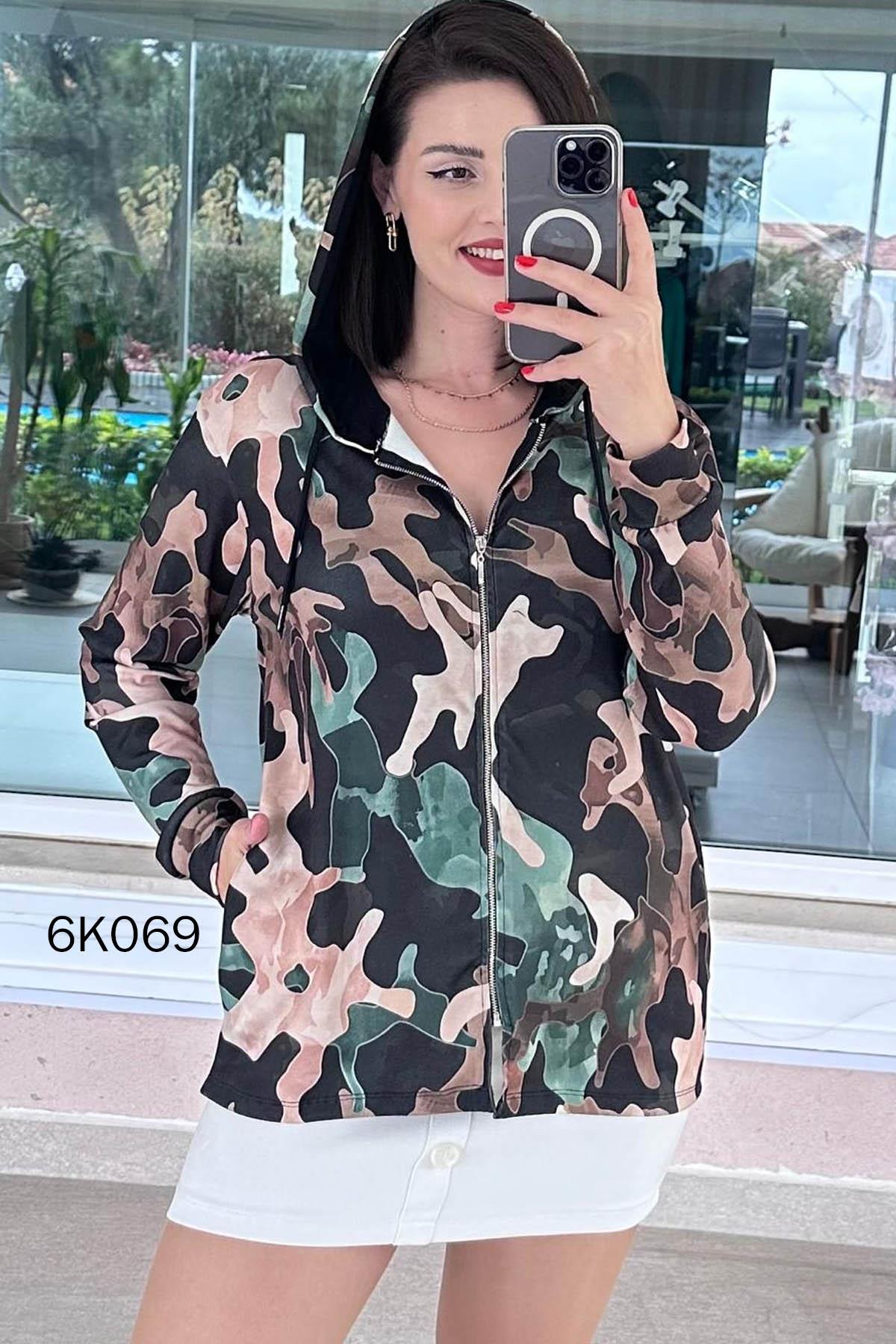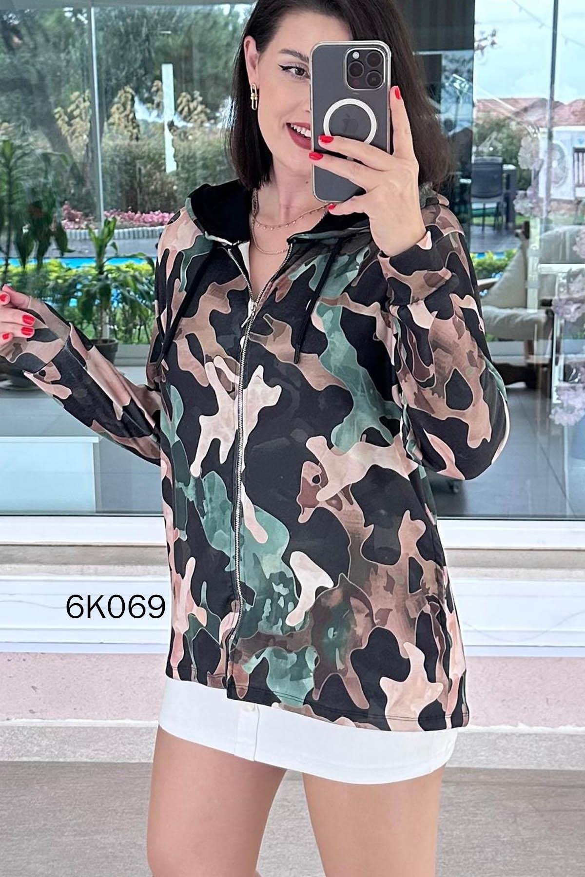Kamuflaj Desen İnterlok Kapşonlu Hırka