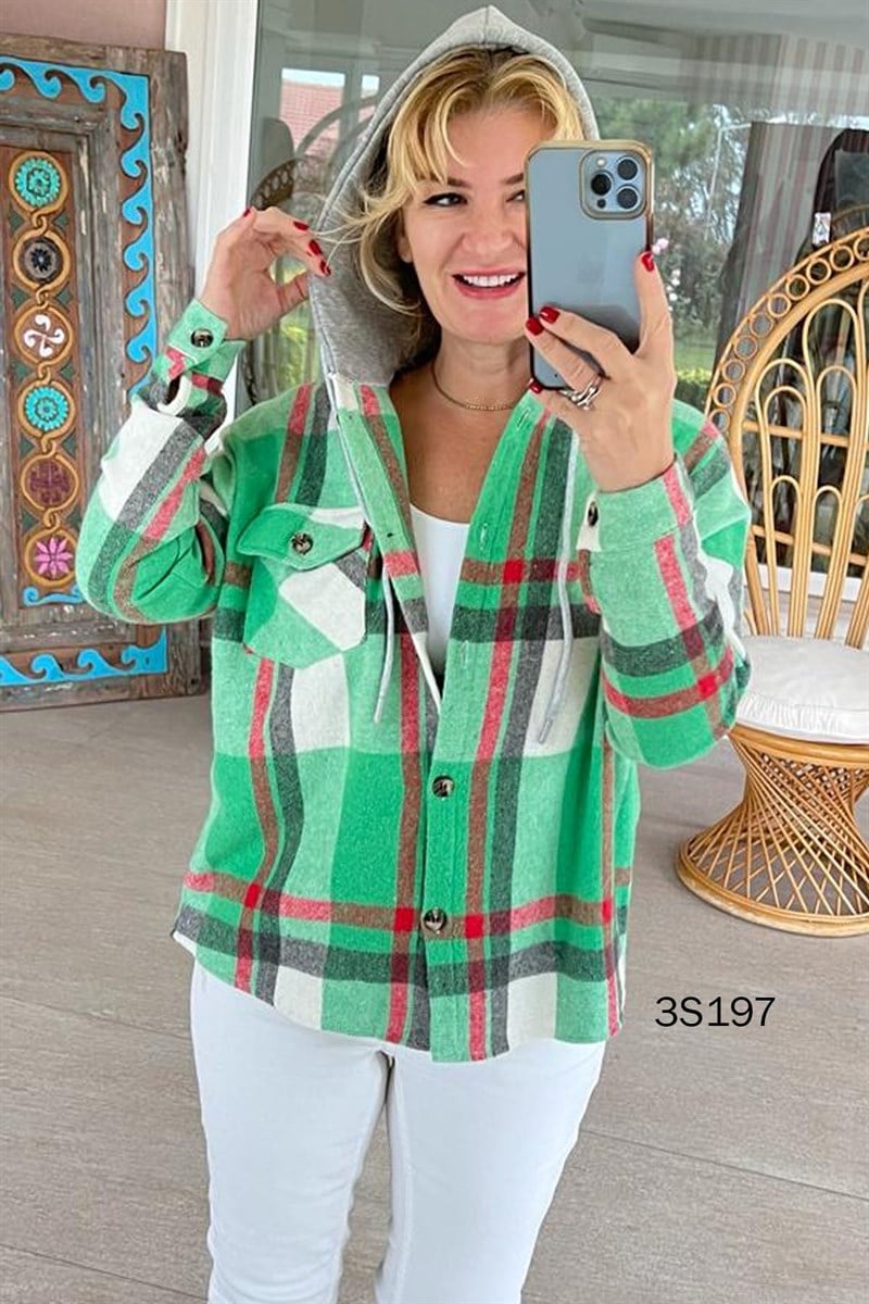 KAPŞONLU ODUNCU GÖMLEK OMUZDAN AŞAĞI ÖN 65 CM ARKA 75 CM