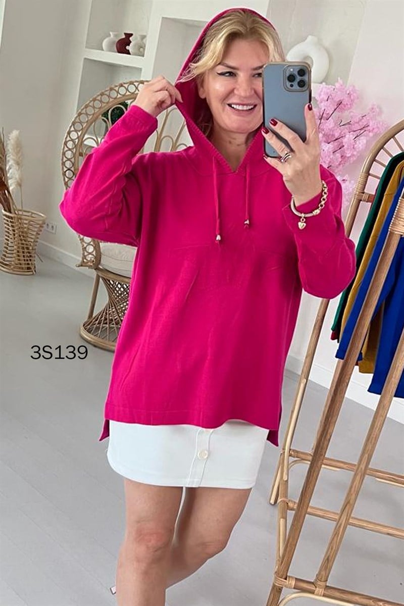 KAPŞONLU TRİKO BLUZ OMUZDAN AŞAĞI ÖN 65 CM ARKA 70 CM