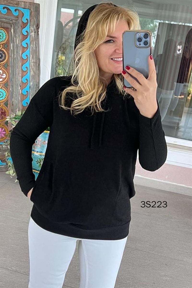 Kapşonlu Triko Bluz