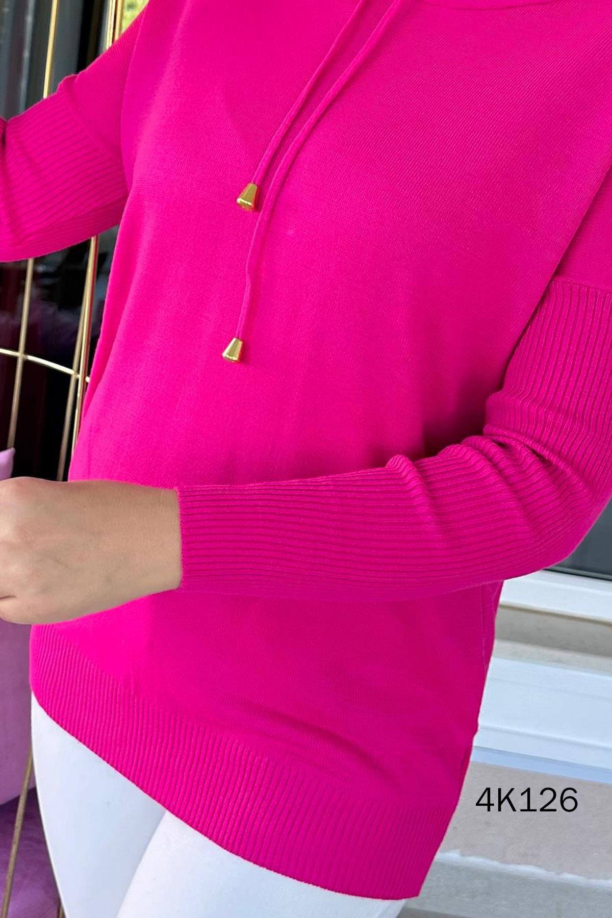 Kapşonlu Triko Bluz