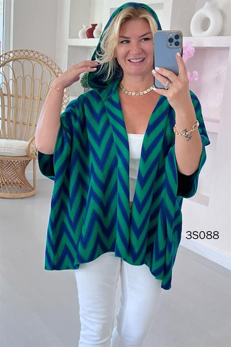 KAPŞONLU TRİKO PANÇO OMUZDAN AŞAĞI 67 CM