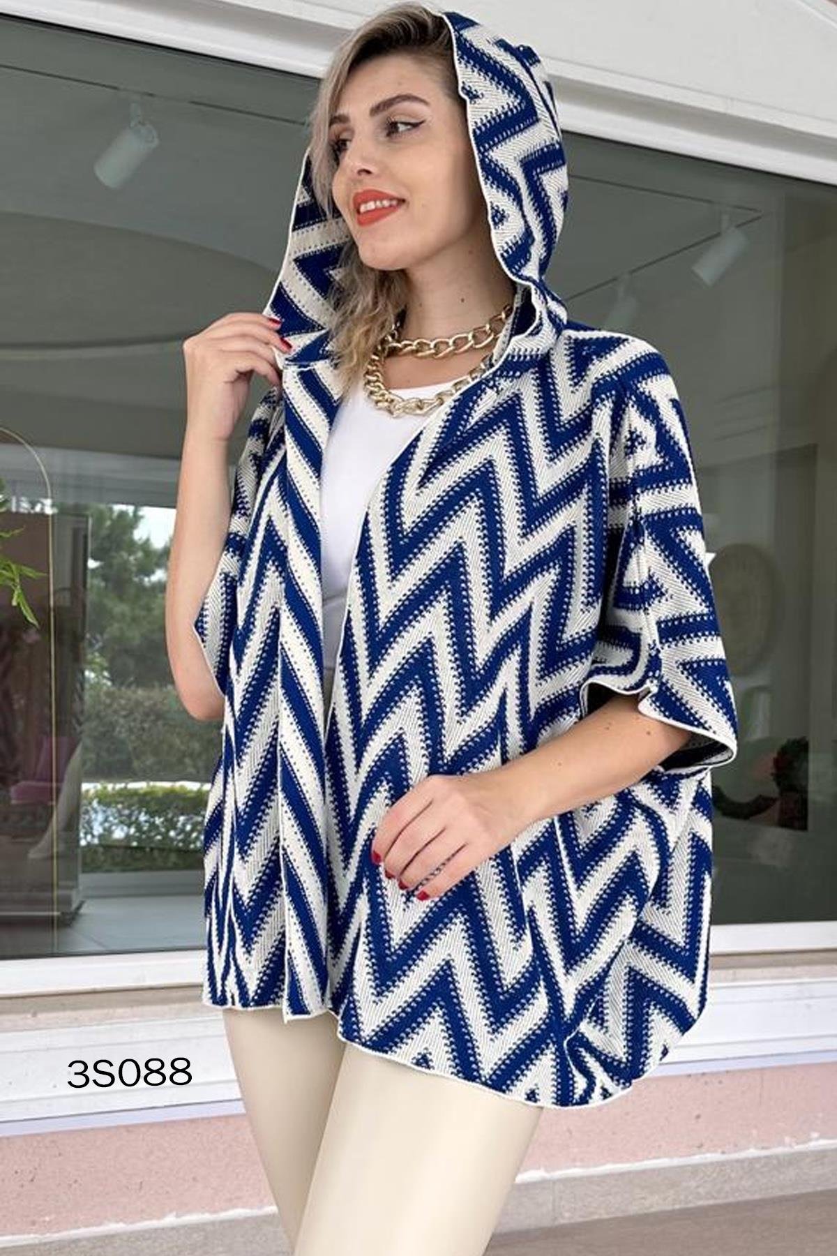 KAPŞONLU TRİKO PANÇO OMUZDAN AŞAĞI 67 CM