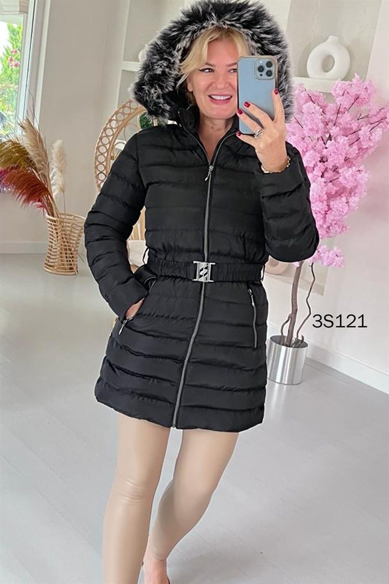 KAPŞONLU UZUN ŞİŞME MONT OMUZDAN AŞAĞI 83 CM