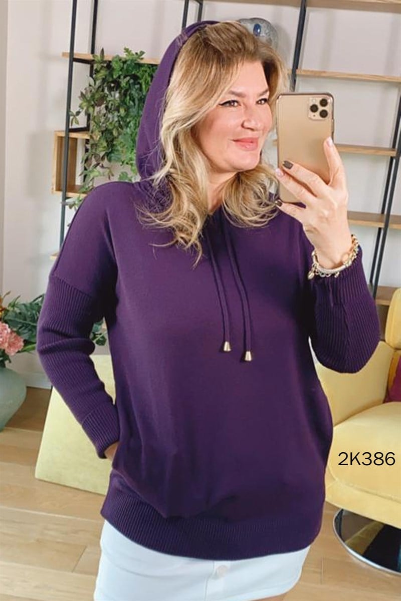 KAPŞONLU YANDAN CEPLİ TRİKO BLUZ OMUZDAN AŞAĞI 73 CM