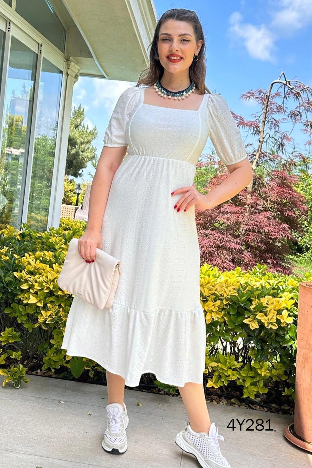 KARE YAKA FİSTO ELBİSE OMUZDAN AŞAĞI 118 CM