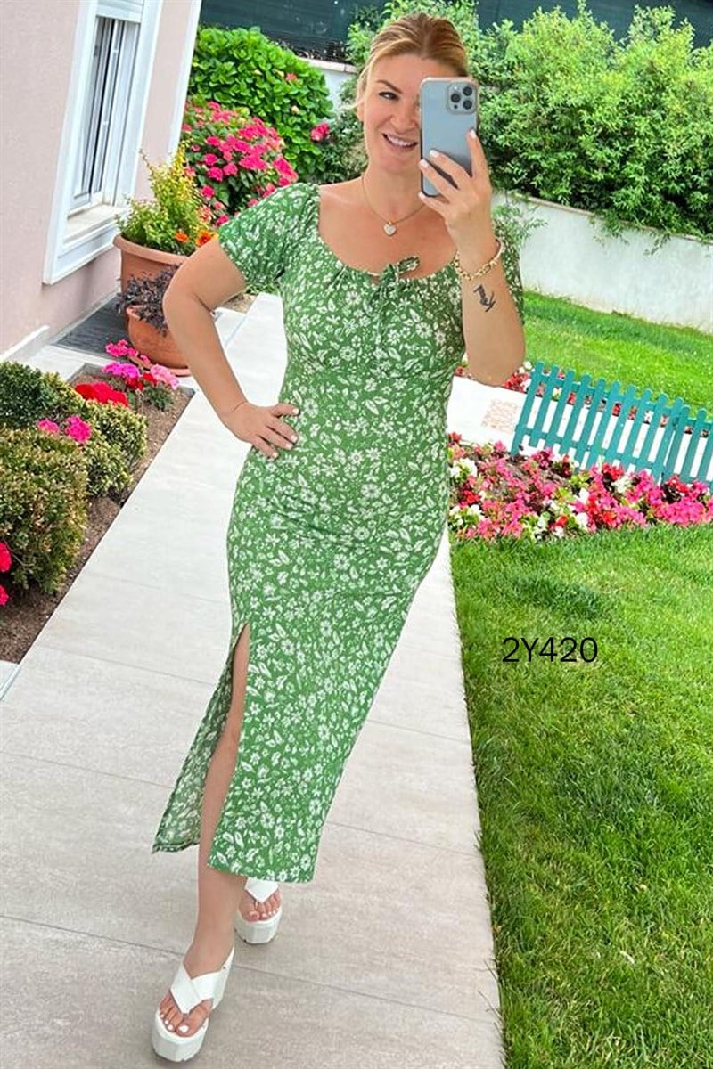 KARPUZ KOL YIRTMAÇLI ELBİSE OMUZDAN AŞAĞI 121 CM