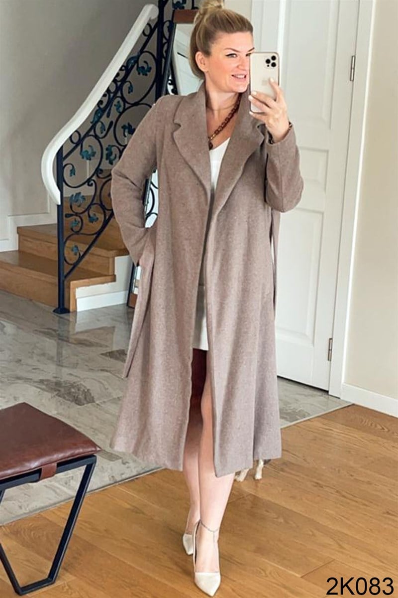 BELDEN BAĞLAMALI KAŞE PALTO OMUZDAN AŞAĞI 120CM