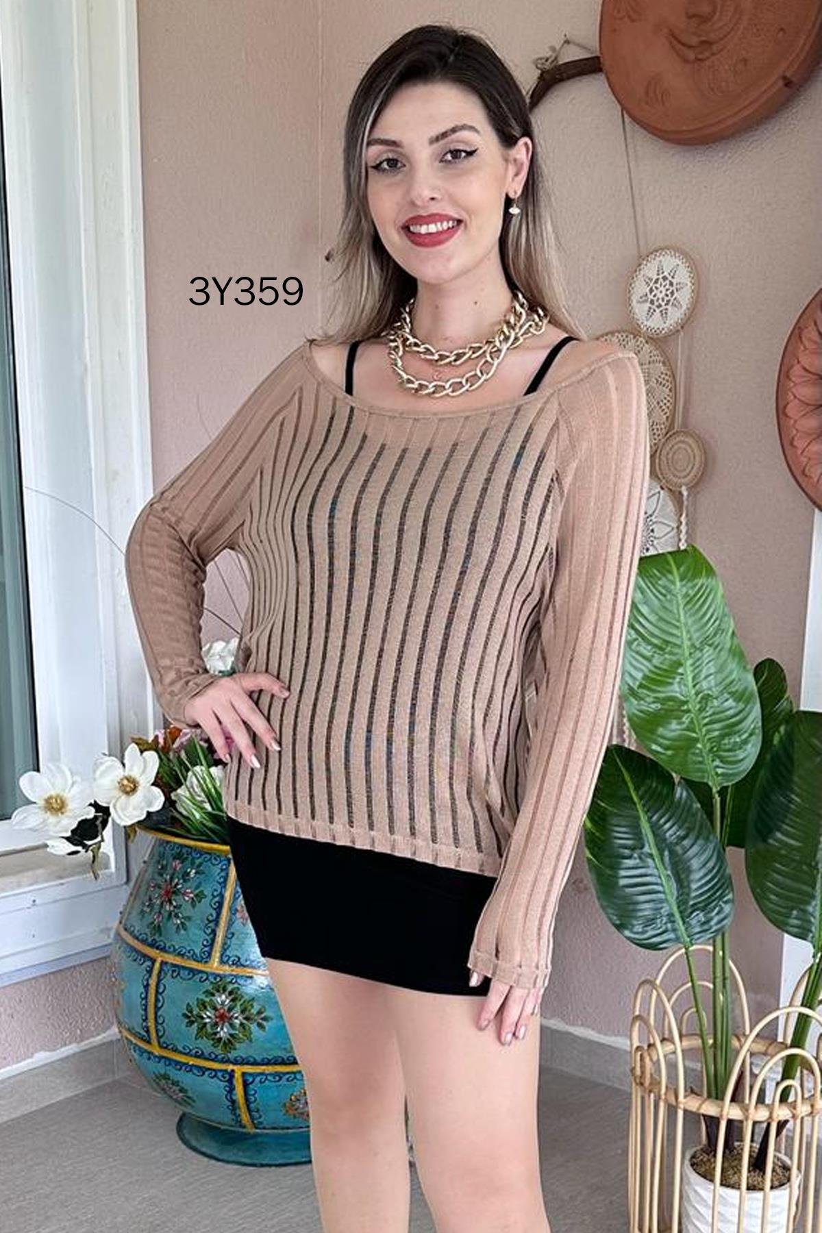 KAYIK YAKA TRİKO BLUZ OMUZDAN AŞAĞI 60 CM