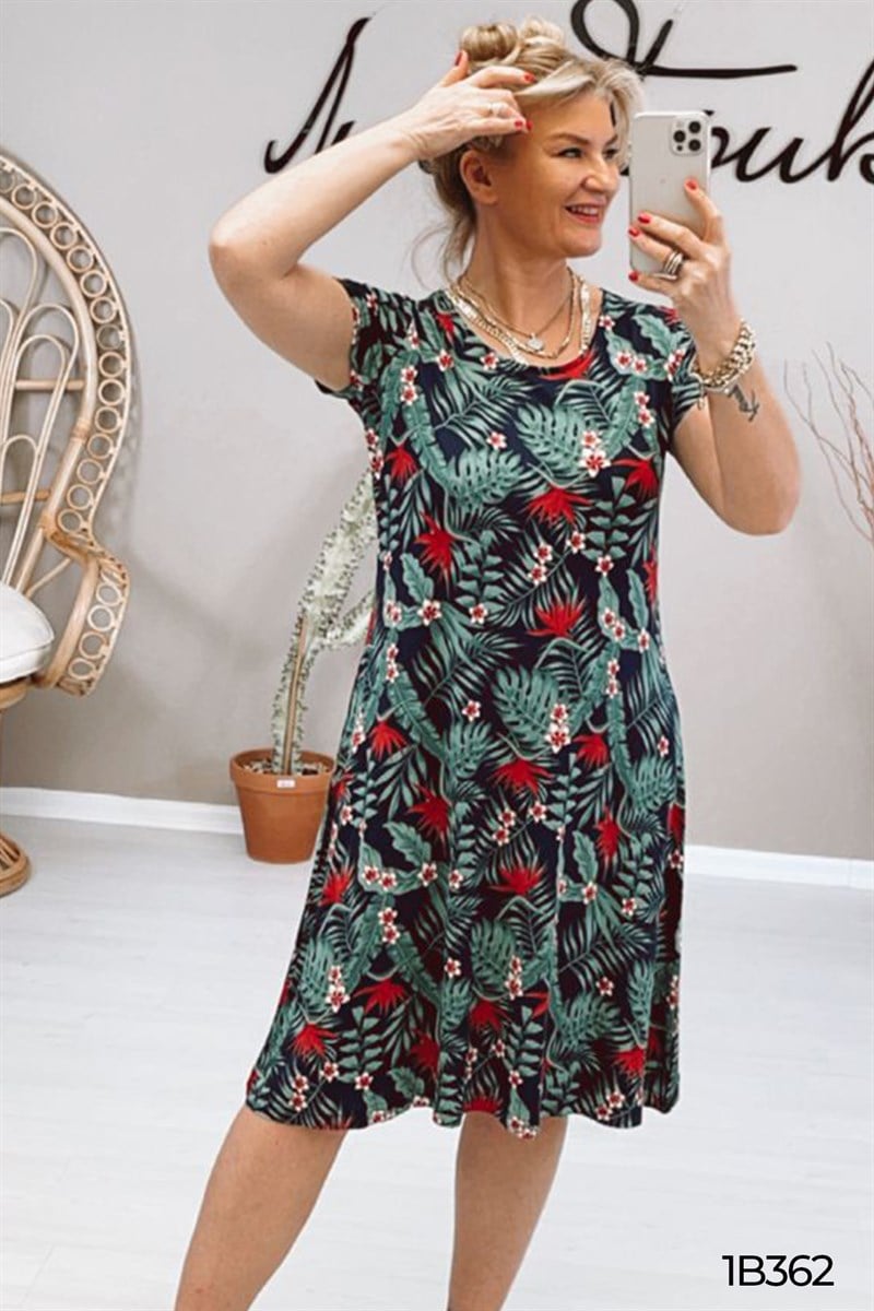 KISA KOL DESENLİ ELBİSE OMUZDAN AŞAĞI 100 CM