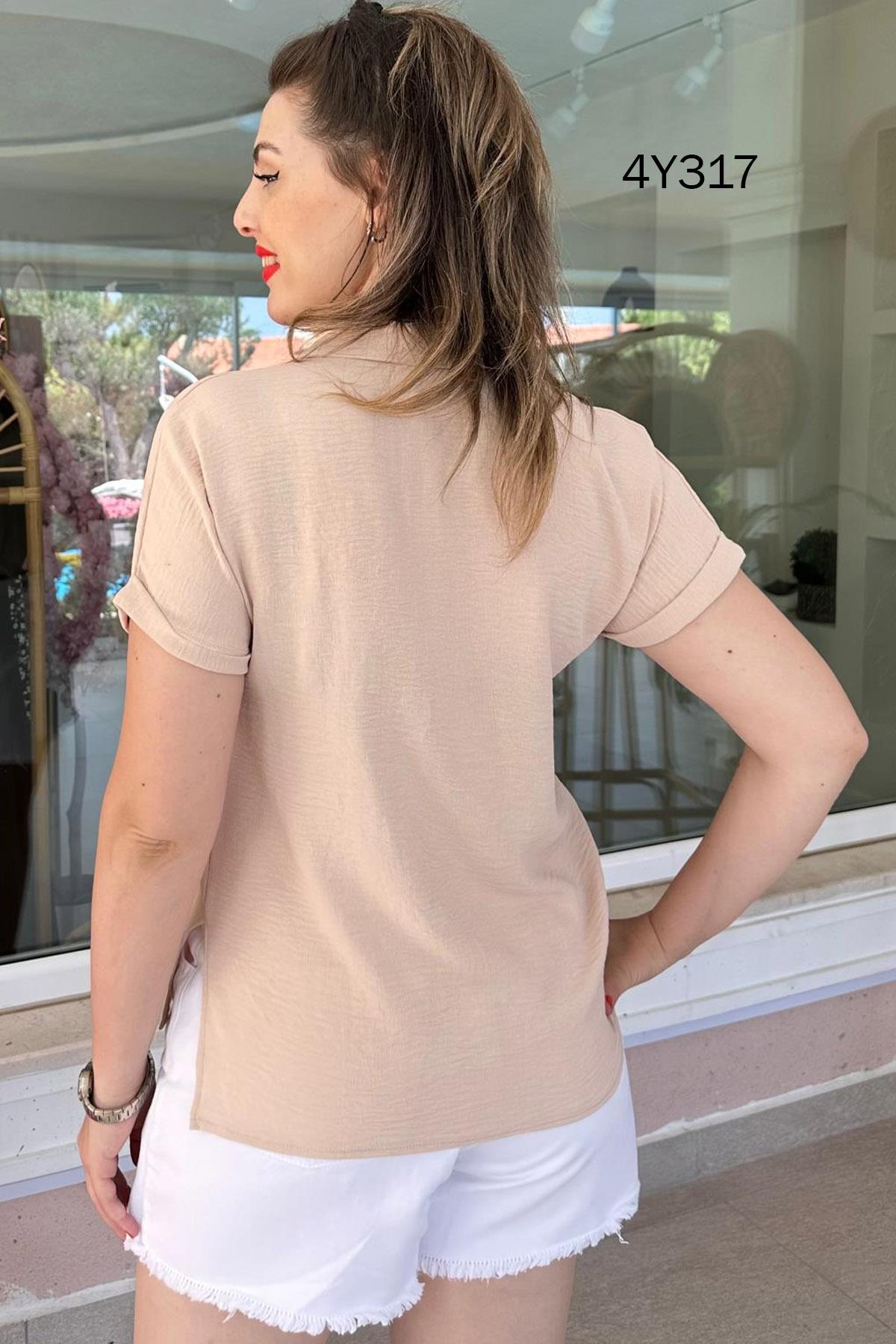 KISA KOL AEROBİN GÖMLEK OMUZDAN AŞAĞI ÖN 63 ARKA 66 CM