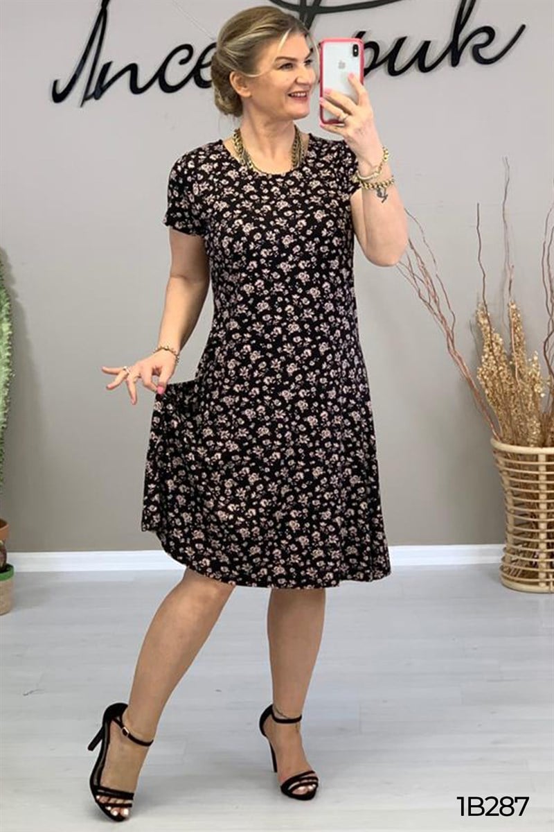 Kısa Kol Desenli Elbise