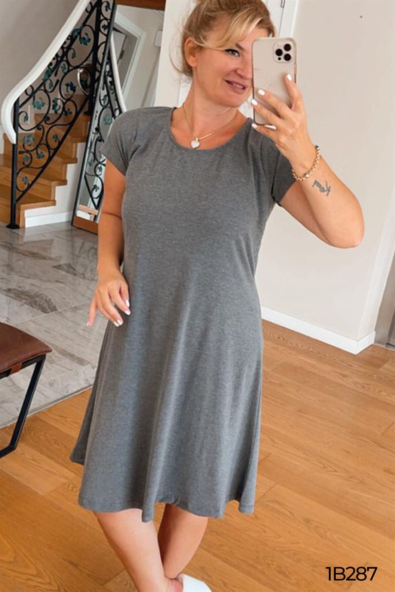 KISA KOL DESENLİ ELBİSE OMUZDAN AŞAĞI 95 CM