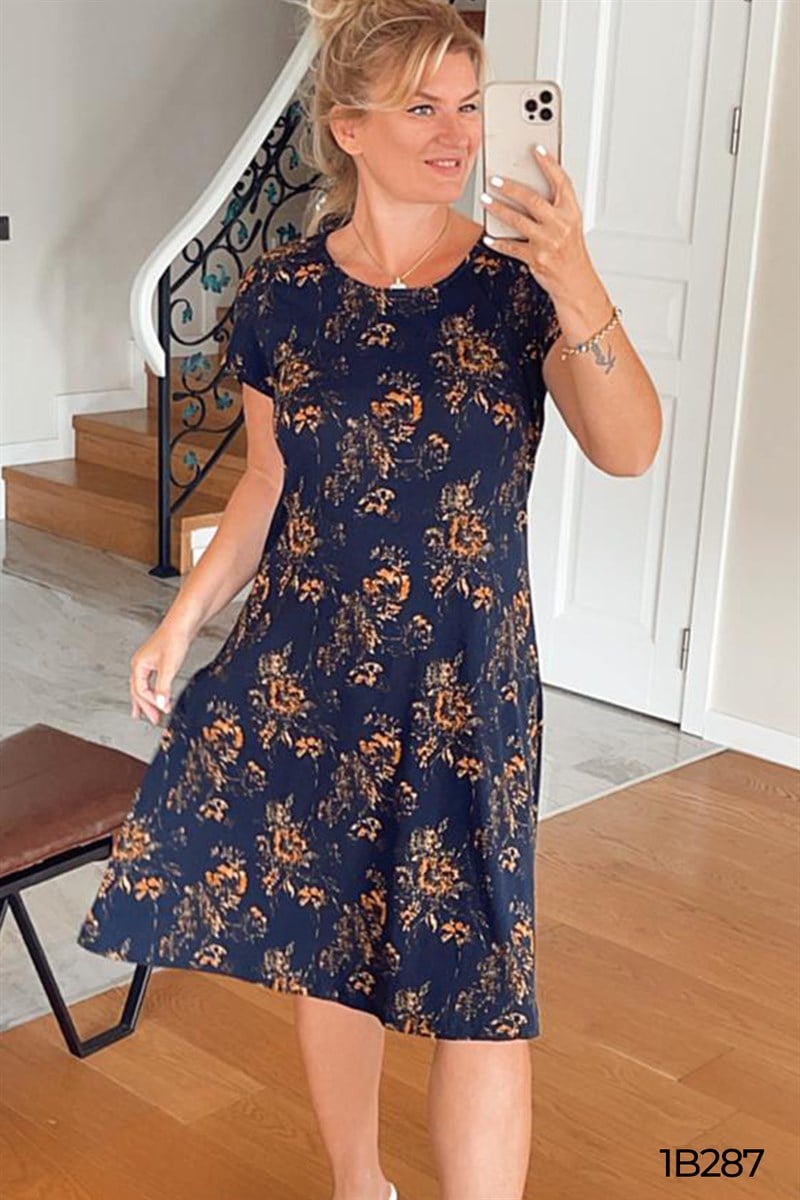 KISA KOL DESENLİ ELBİSE OMUZDAN AŞAĞI 95 CM