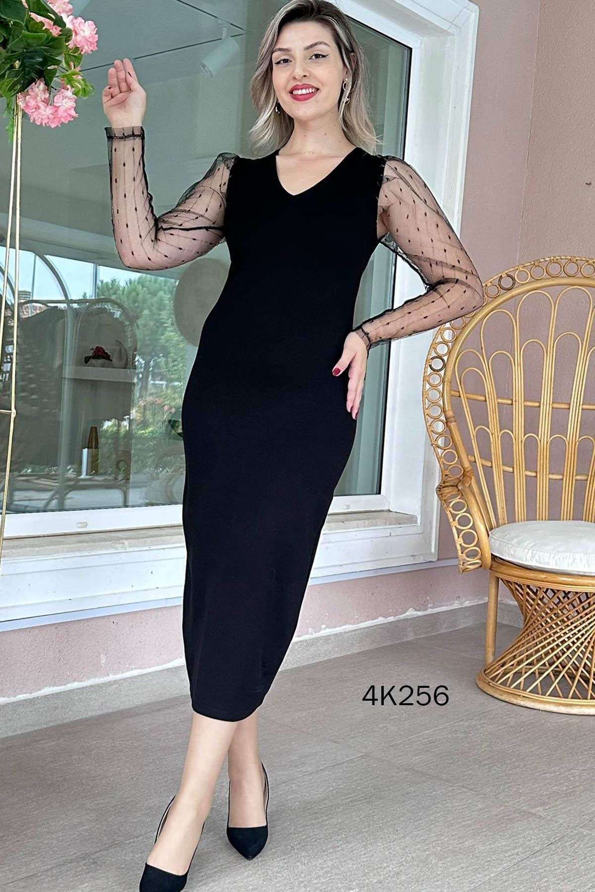 Kolları Tüllü 2 İplik Elbise