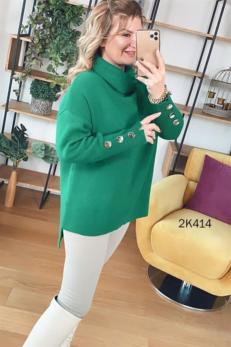Kolu Düğmeli Boğazlı Triko Bluz