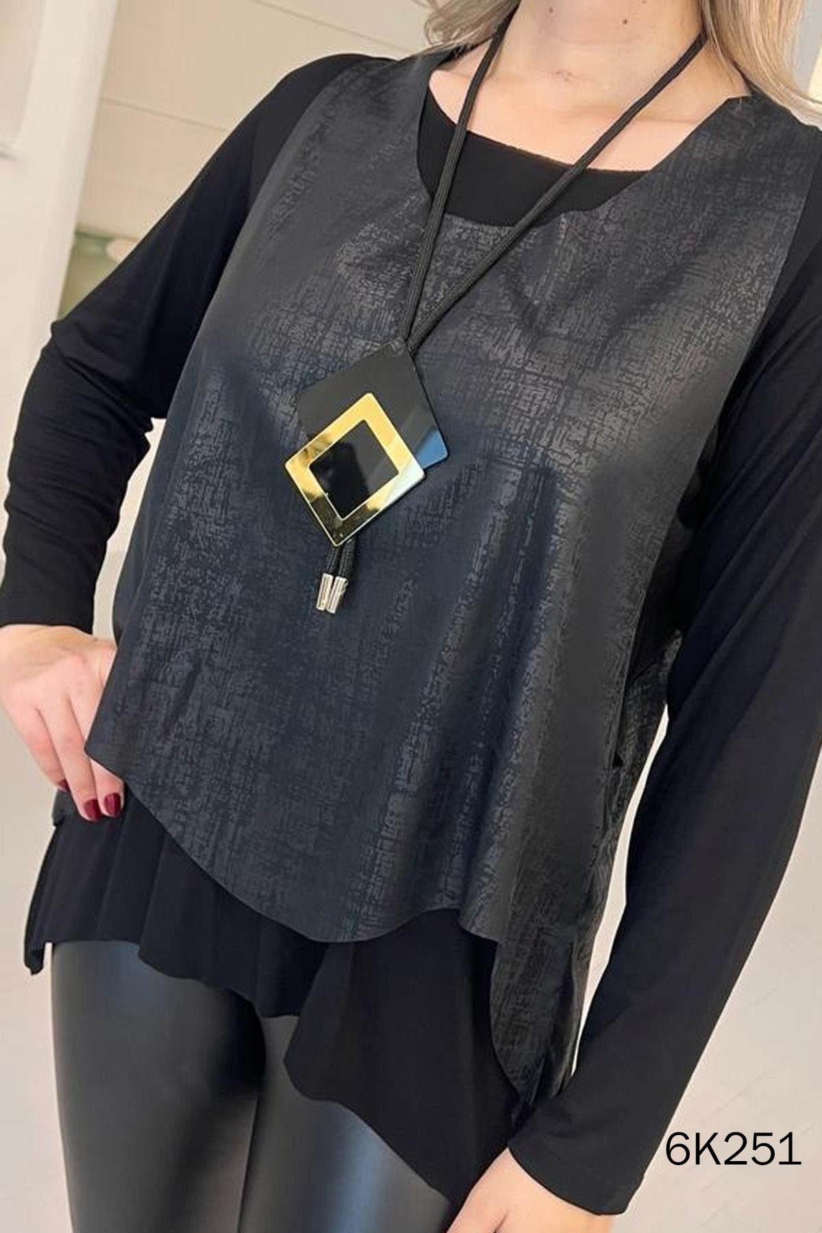 KOLYE HEDİYELİ YELEKLİ BLUZ OMUZDAN AŞAĞI BLUZ KISA YERİ 67 UZUN YERİ 77 CM YELEK OMUZDAN AŞAĞI UZUN YERİ 64 KISA YERİ 51 CM