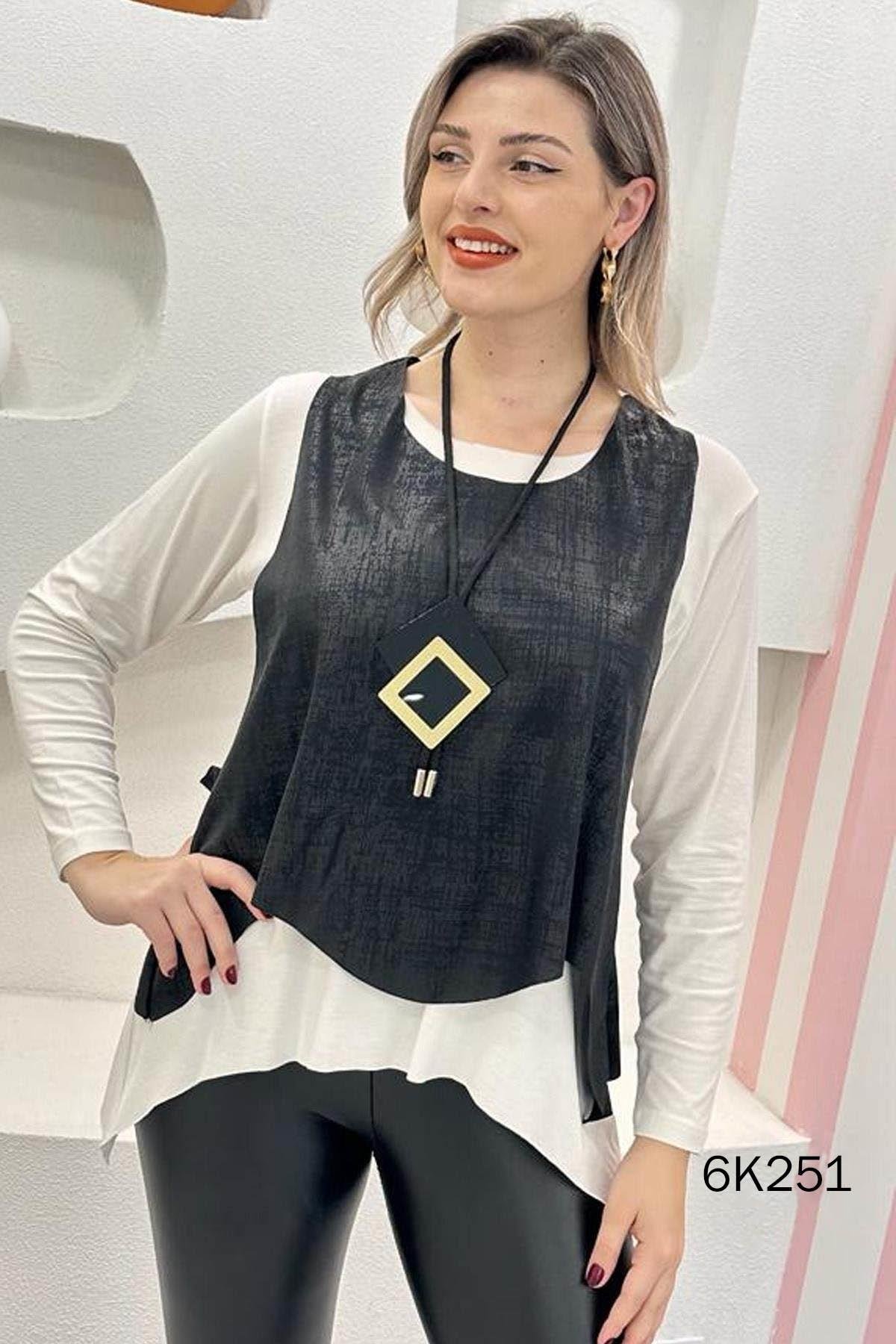 KOLYE HEDİYELİ YELEKLİ BLUZ OMUZDAN AŞAĞI BLUZ KISA YERİ 67 UZUN YERİ 77 CM YELEK OMUZDAN AŞAĞI UZUN YERİ 64 KISA YERİ 51 CM