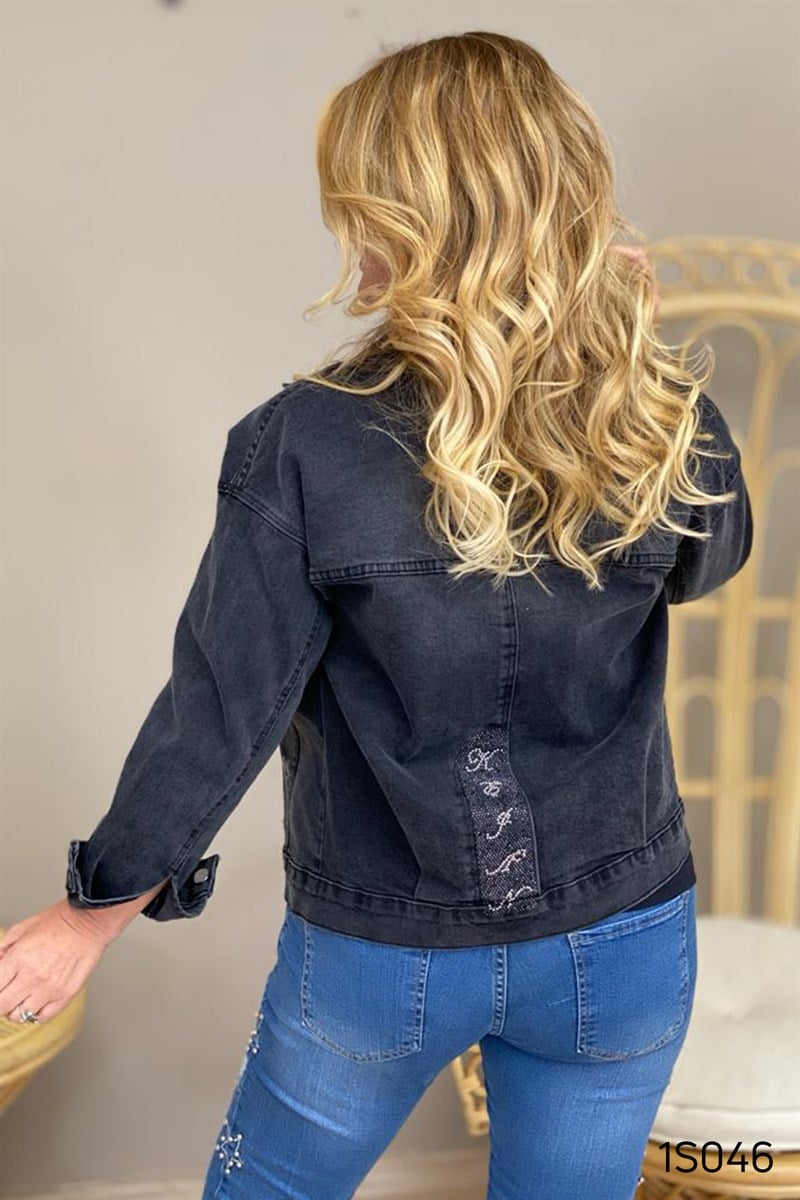 ÖNÜ DÜĞMELİ ÇİFT CEP DETAYLI TAŞ İŞLEMELİ KOT CEKET