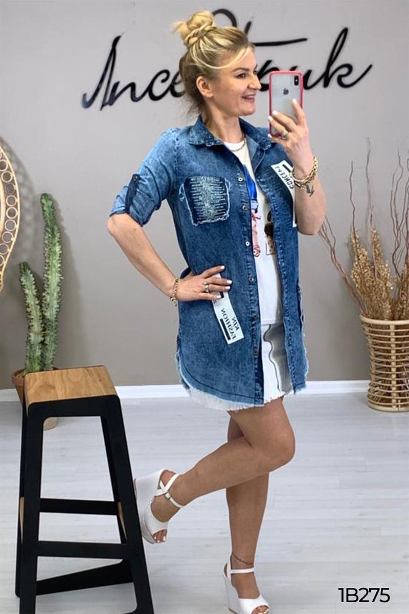 TAŞLI BASKILI CEP DETAY İKİLİ TAKIM %80 COTTON %20 POLYESTER KOLLARI KATLANABİLİR OMUZDAN AŞAĞIYA UZUNLUĞU 82 CM