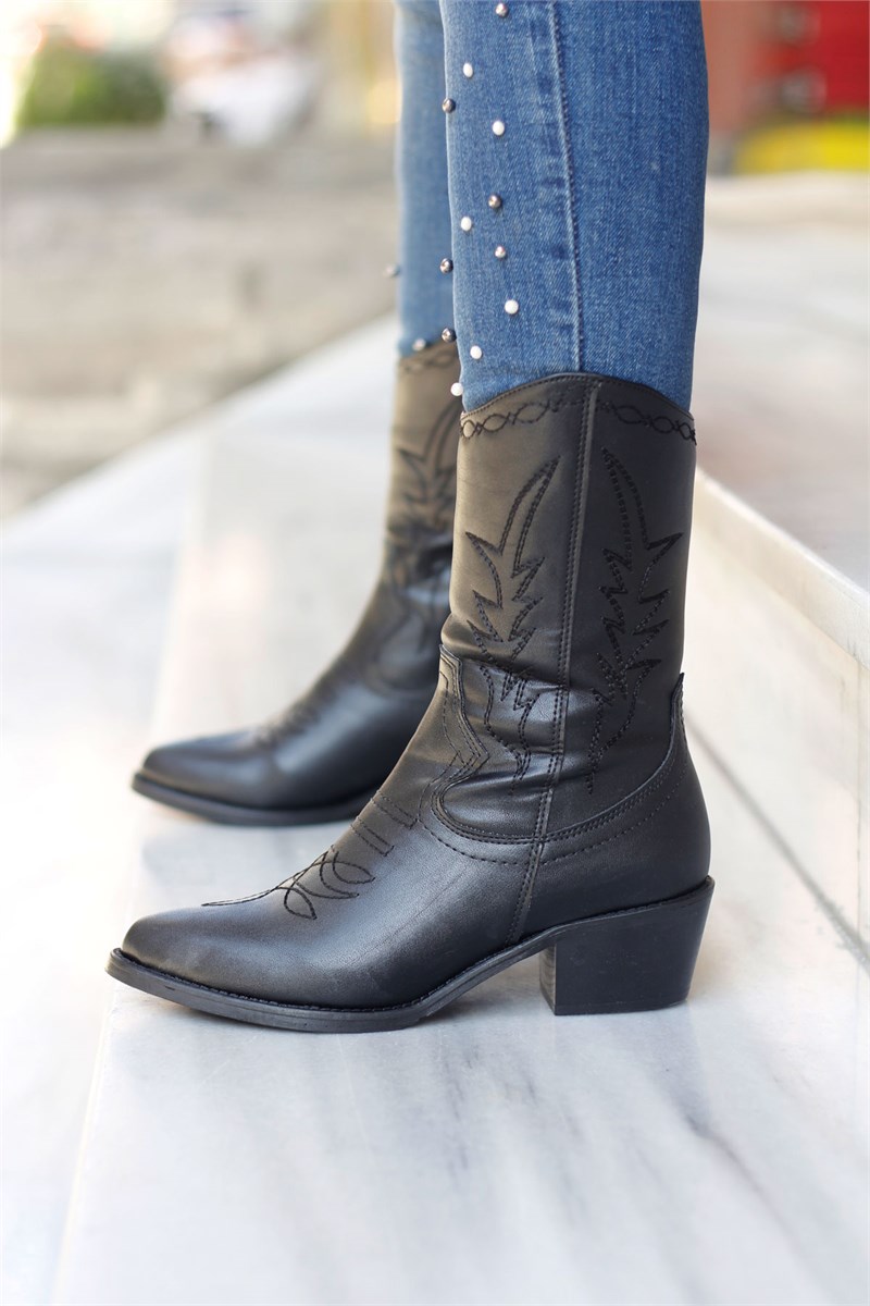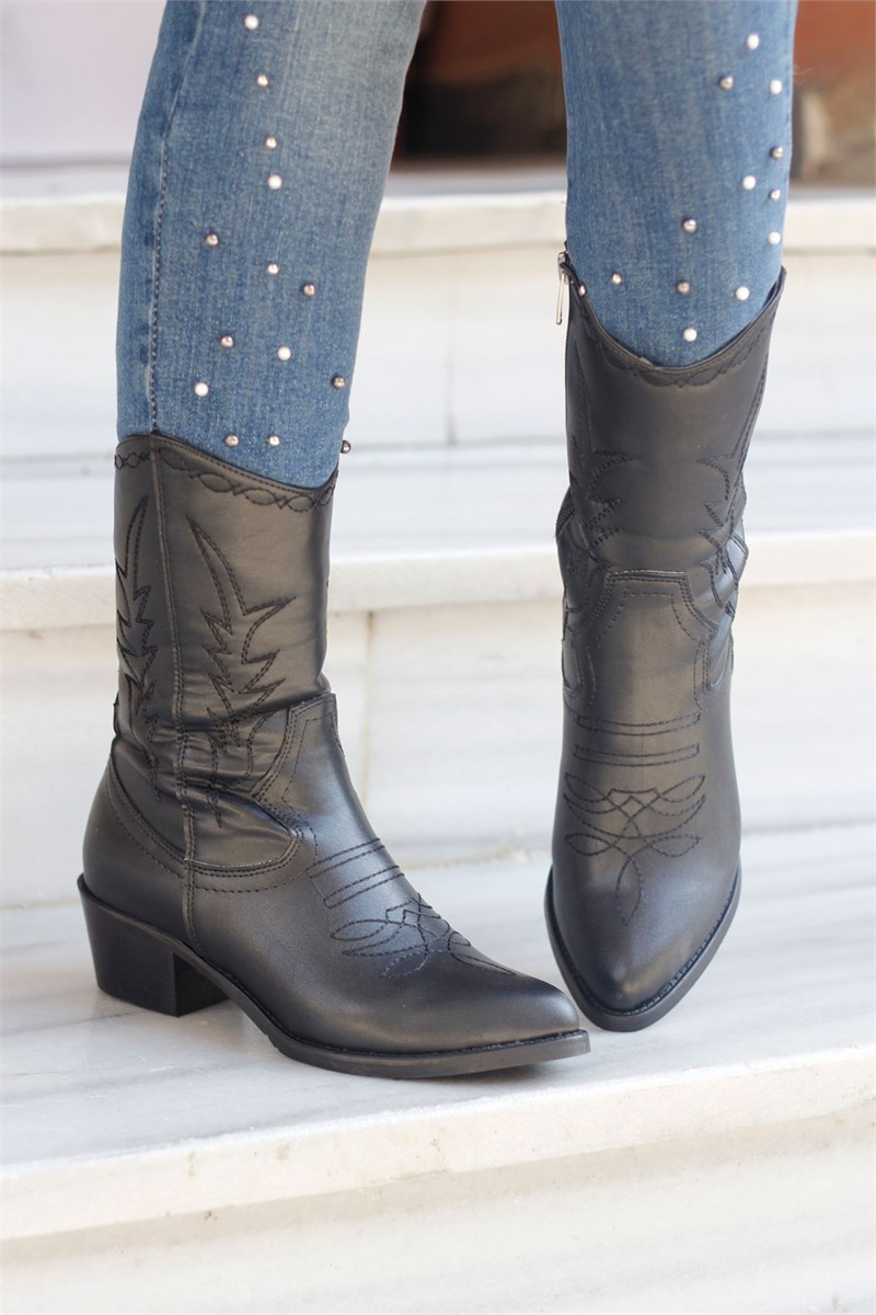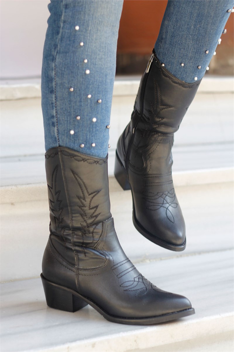 Suni Deri Süet Ökçe : 5 CM Nakış İşlemeli , İç Kısımdan Fermuar Detaylı Olarak Tasarlanmıştır.