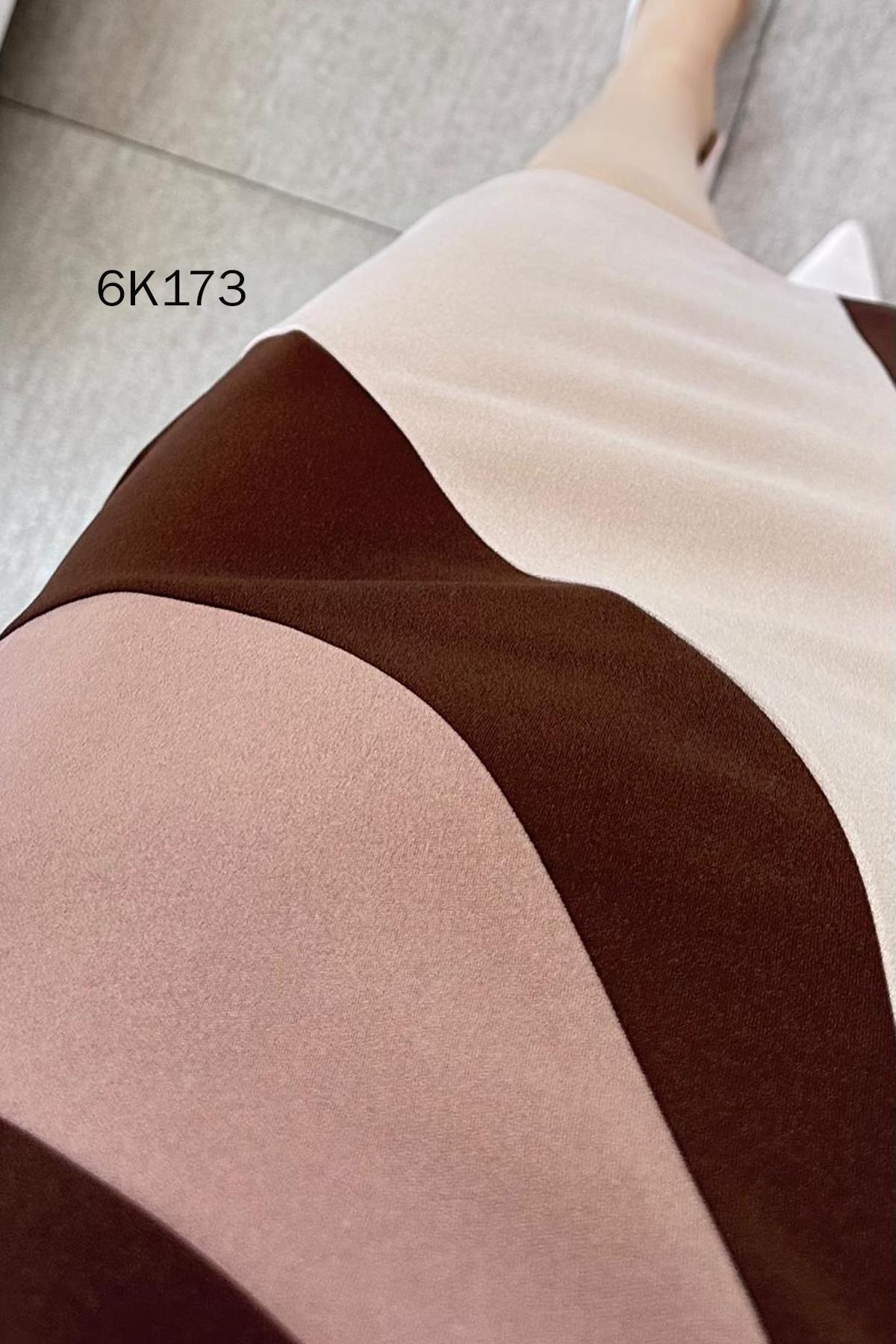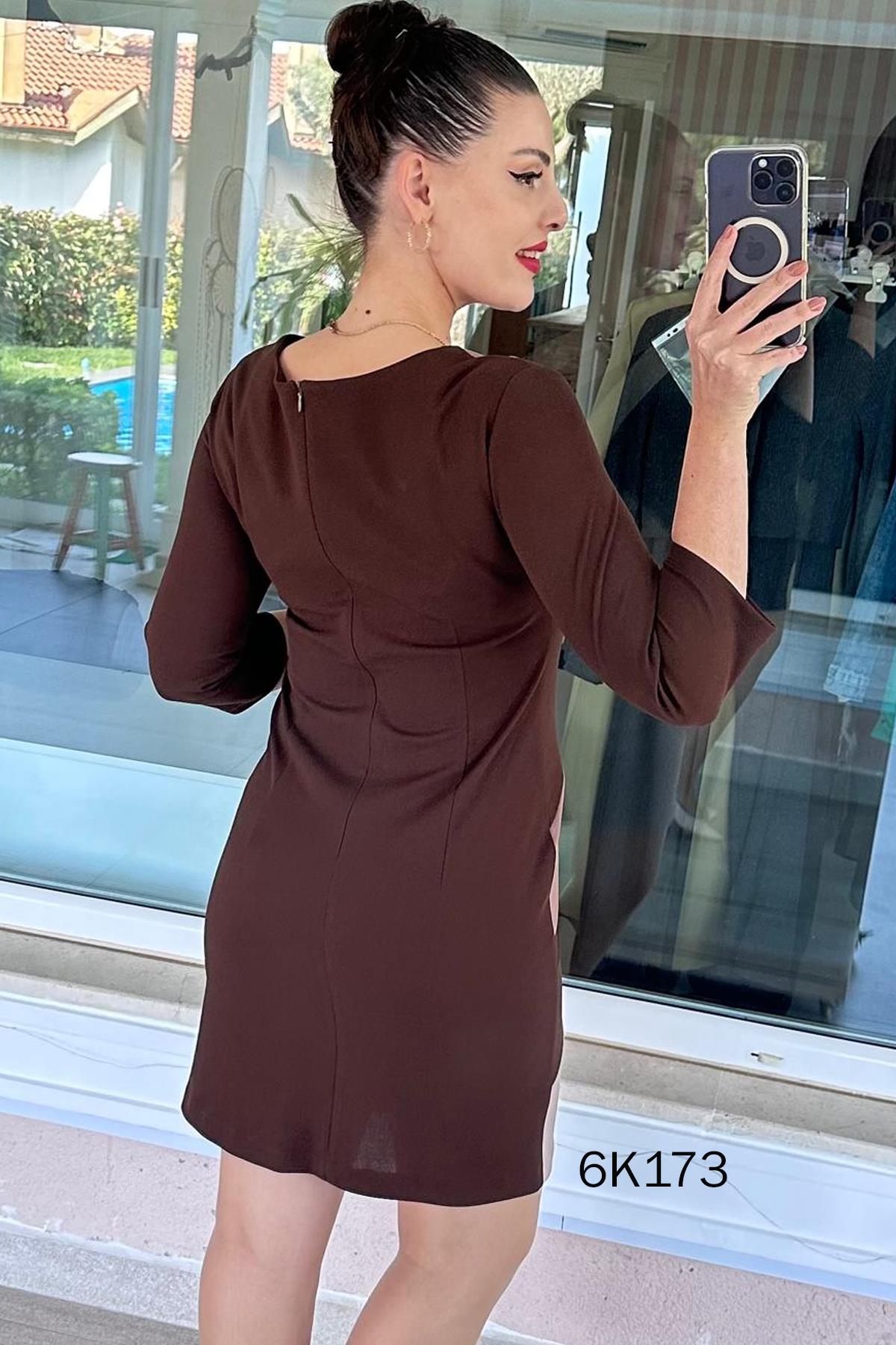 KREP KUMAŞ DESENLİ DİZ BOY ELBİSE OMUZDAN AŞAĞI 94 CM