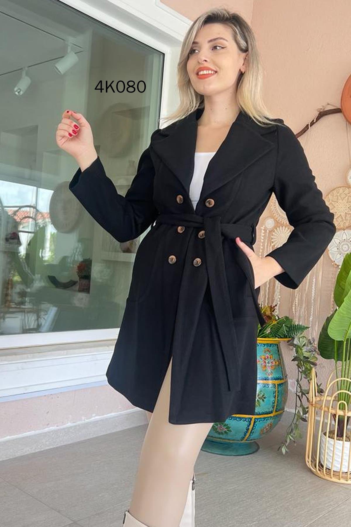 Kruvaze Belden Bağlamalı Kaşe Kaban