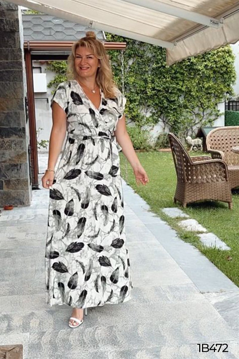 Kruvaze Yaka Belden Bağlamalı Elbise