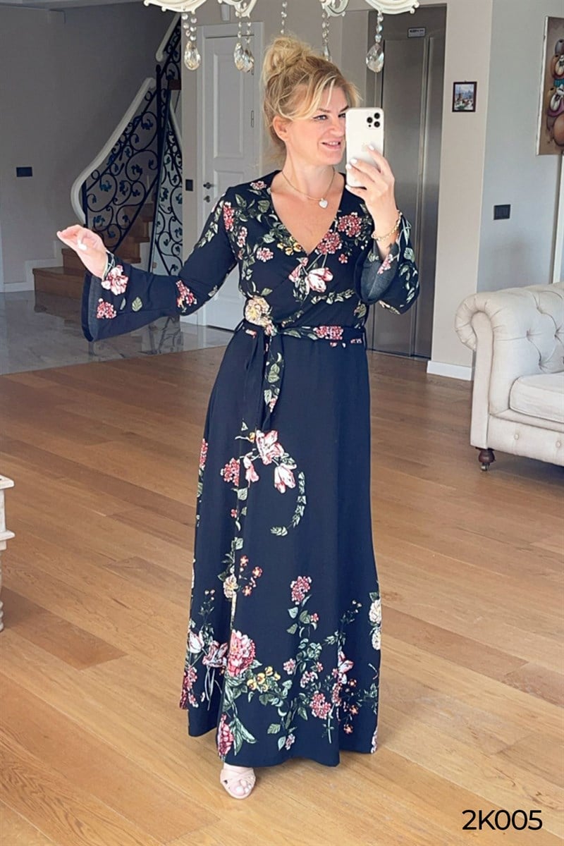 Kruvaze Yaka Belden Bağlamalı Elbise