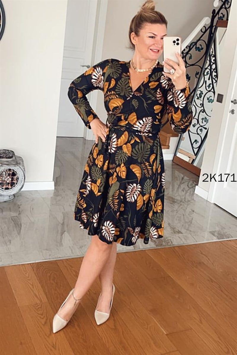 KRUVAZE YAKA BELDEN BAĞLAMALI LİKRALI KADİFE ELBİSE OMUZDAN AŞAĞI 95 CM